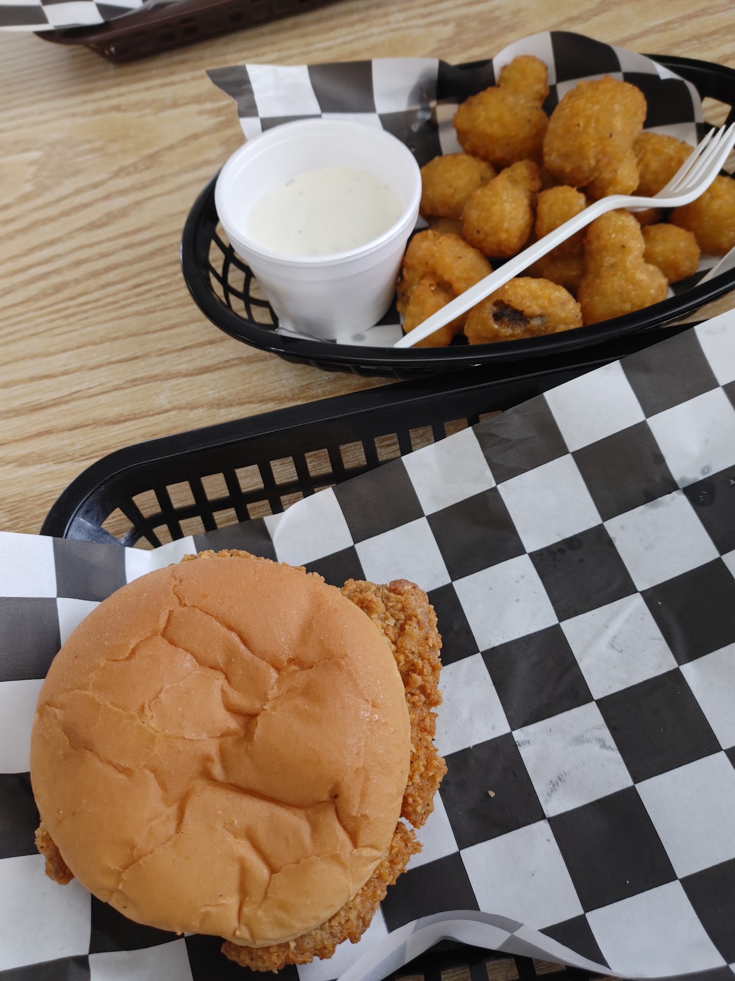 First: This is a dairy/ice cream bar NOT a "Diner". Limited seating inside with a few 2 person picinic tables outside. Wanted a burger, they were out, though it was within an hour of closing. I had a pork tenderloin (deep fried patty similar to a FF fried chicken sandwich) hand sliced tomato, lettuce, & mayo. It filled the hunger need. Partner had the meatloaf sandwich with ketchup, mustard, mayo, tomato, lettuce & pickle. Definitely acceptable, nothing outstanding. Both ordered as a basket, with "fair fries". Again acceptable, but came without salt. I had to ask for ketchup, wasn't offered salt or pepper & didn't want to go back inside & wait while food got cold. Very reasonably priced. Ice cream, milkshakes etc. looked good and were generous portions. Offerings were good for a Dairy Bar, however, I was not expecting his type of establishment from...