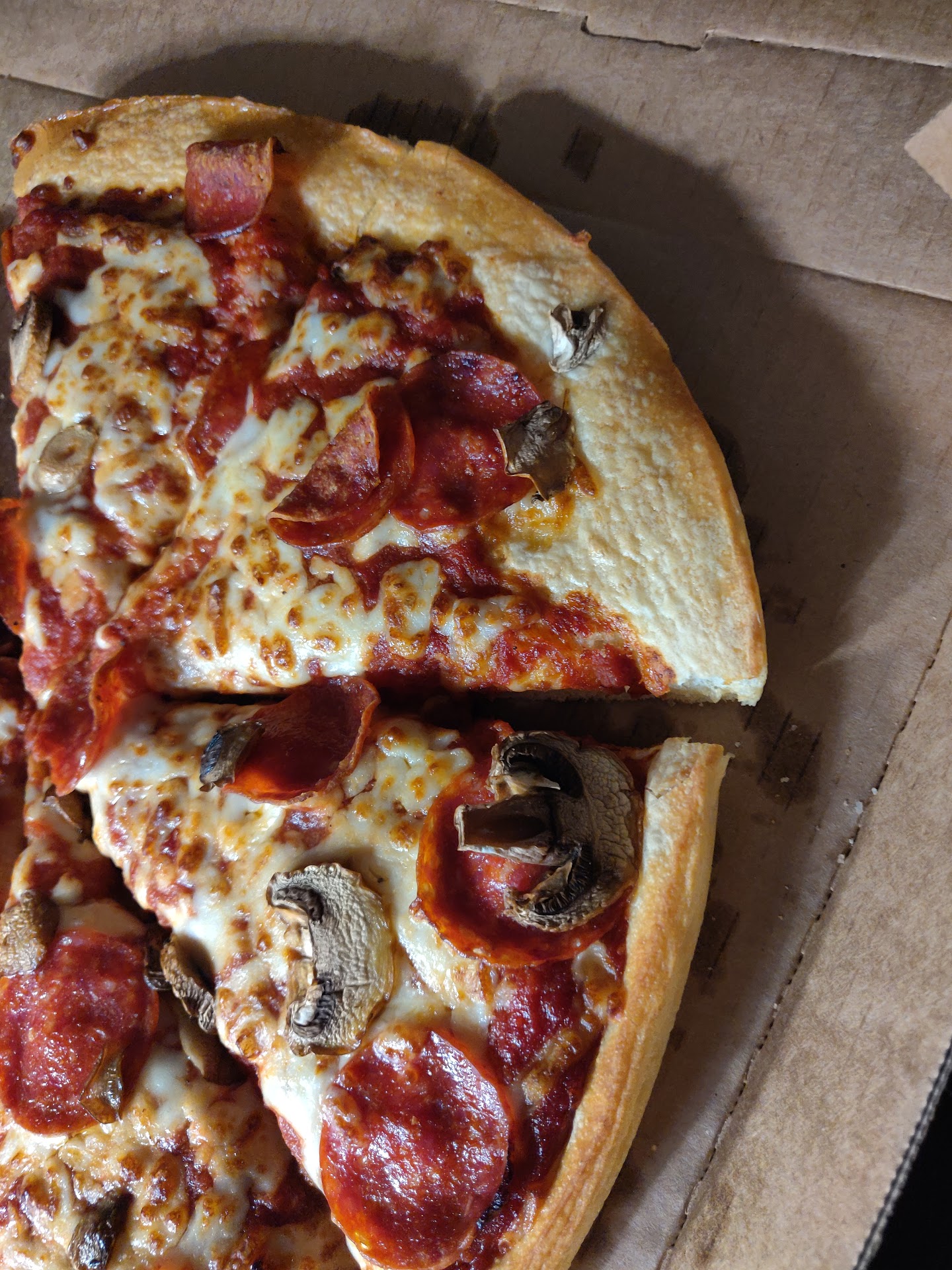 Read morePleasantly surprised! Good tasty pizza. Soft dough with crispy edges, melty cheese, and crisp-edged pepperoni's. One of only a few locations open later than 9pm. We got a combo that came with two medium pizzas, bread sticks, and chicken tenders (aka boneless wings). The chicken was fantastic and the pizza was fabulous. The only miss was the bread sticks...they were a little tougher than I would have liked and the entire top was covered with granulated garlic powder. Not super appetizing but wasn't a big deal because everything else was really good. Both the kids and the adults in our party...