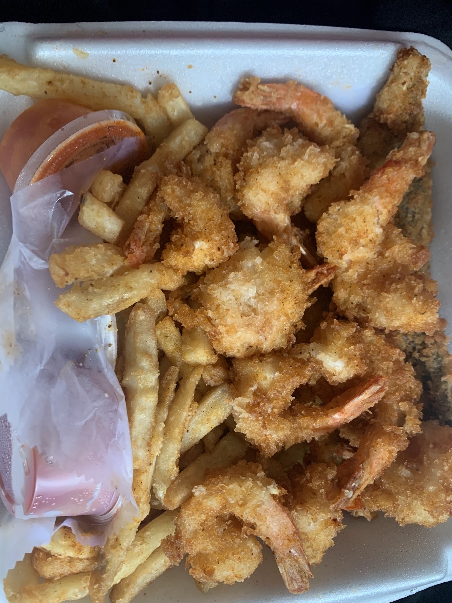 Spent $40.00 on food and left $35 worth of food for them to trash. I ordered Buffalo wings well done which where soggy and salty AF TRASH. Fried fish platter with cabbage and Mac and cheese. Fish tasted like absolutely nothing no flavor at all. TRASH The Mac and cheese was a joke lol TRASH the cabbage was half decent and half is reaching. Ordered fried shrimp also and they where clearly some Corner store pre breaded BS. TRASH Just throw the ENTIRE kitchen and staff away.
