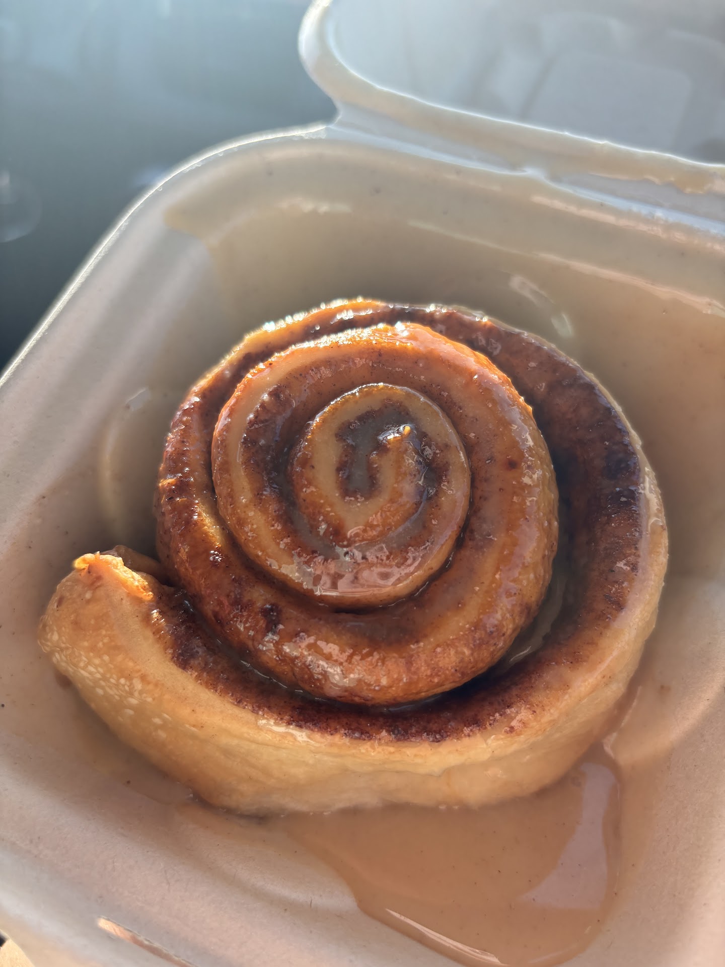 Not pictured the delicious Açaà Bowl! 100 percent would come back. The cinnamon roll was warm which was a nice surprise and had a very good cream cheese cinnamon sauce. The americano was piping hot and very good. I got the iced chai latte with sweet foam topping which I would give a 10/10. Now the star of the show the traditional Açaà bowl was so tasty and fresh! We added peanut butter which is a must do. The workers were extremely nice and made the overall experience that much better! Will definitely come back next time...