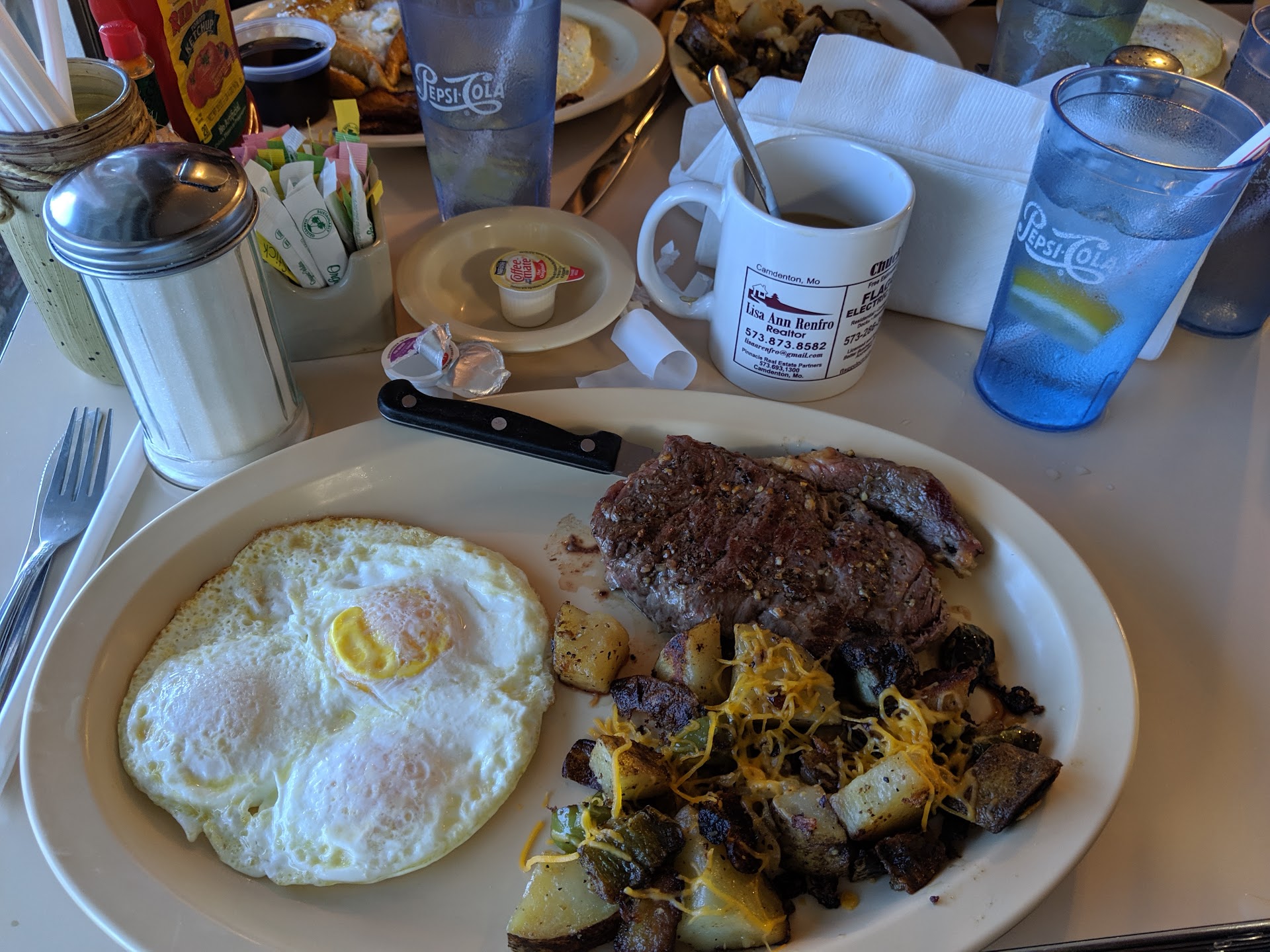 Read moreWe went Sunday afternoon to miss their normal rush hours and we were very happy with Everything! The great service and extensive classic diner menu includes All Day Breakfast and A yummy looking Breakfast Buffet(runs till 1p). I ordered the Fish Filet Dinner and it was good, along with Real Fresh Cut FF’s!!! But Beckie ordered the Chicken Fried Steak Dinner and she’s Still talking about it! According to her, it’s in the Top 3 she has EVER Had! Perfectly tender, seasoned and fried with Real mashed potatoes and excellent “white Grandma Gravy”!!!! Then add on the Super Fabulous Cherry Fried Pie and, like I said....she’s still talking about! Memories of Bonnie’s Fried Pie Heaven abound! Y’all Need to Go there 😍 You Will Not Be Sorry! We will be heading back next weekend if y’all want to meet us there!?!?!...