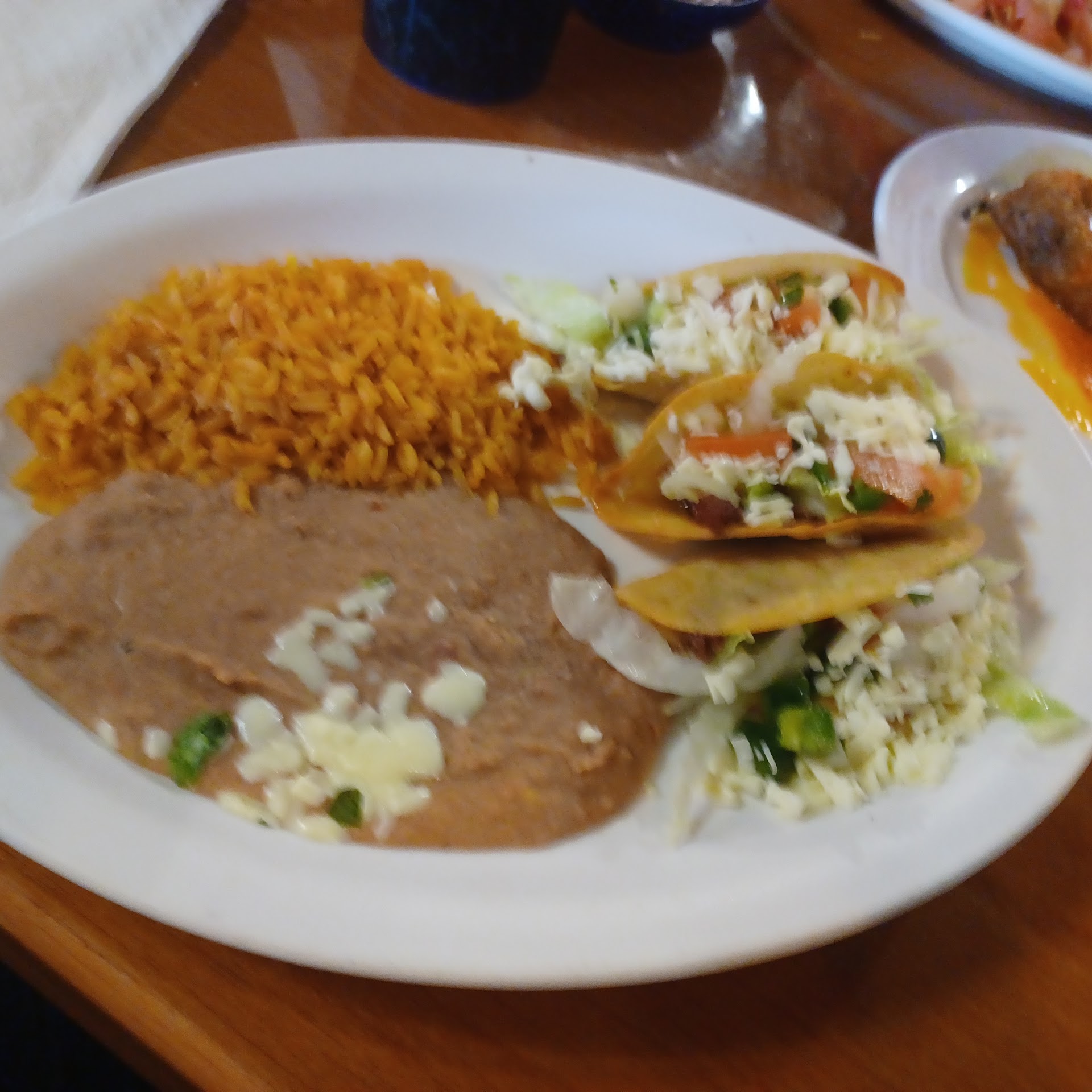 Read moreBrightly lit, great music, spacious restaurant. Service was efficient and professional, not overly friendly. We live in the area and have tried all the Mexican restaurants around the lake, and this one was fine. I've come to realize that what is called "Mexican" food here at the lake is just a Tex Mex version of the food. I had 3 fried beef tacos, tiny, sort of under fried tacos, w/a little unseasoned ground beef. My husband had a beef taco plate, which was a burrito filled w/the same unseasoned ground beef, covered in white cheese sauce, a glob of sour cream, and random chopped tomatoes. The beans were definitely NOT homemade, and the rice was bland. My chile relleno was filled w/provel cheese and covered in the salsa that came with the chips. This seems like a great place to party and hang out but not to eat legit Mexican food. Btw, ask for an itemized receipt. We were given a receipt w/no itemization, and when we git to the register and asked for the bill to be broken down, it was...