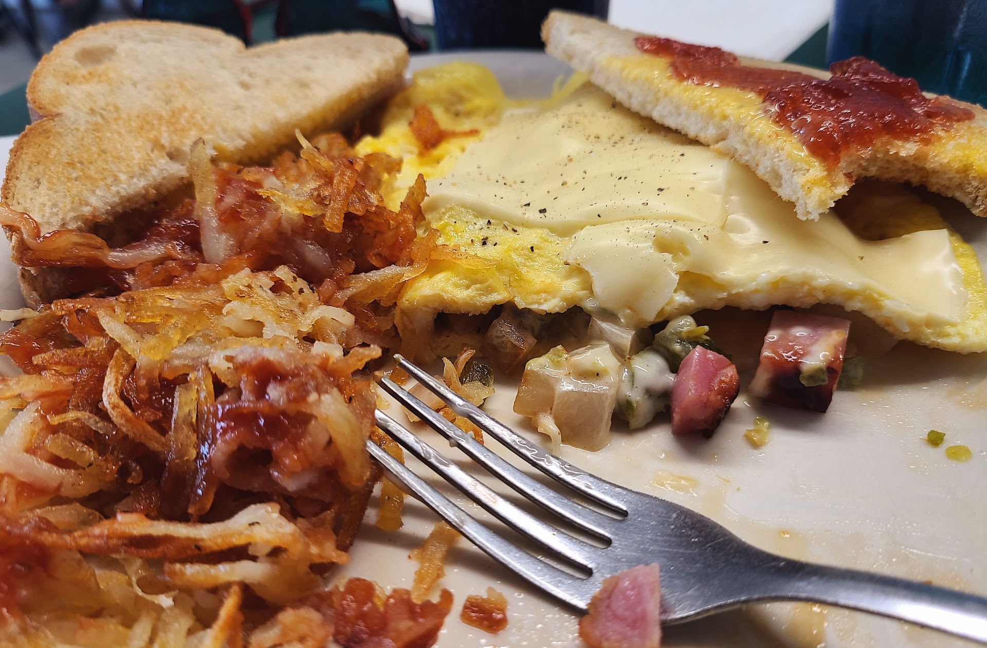 Our food came in a timely fashion, our server was professional but not chatty and she refilled our drinks promptly. My husband has a breakfast sandwich that he said was as good as the ones I make him (WTH :-p) and he was stoked.