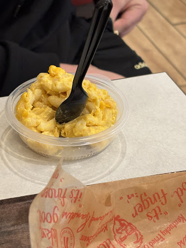 I thought a KFC was the same everywhere. I was wrong! I ordered a 5 PC tender box. They told me the side options and I chose corn on the COB (her words, not mine), mashed potatoes, and gravy. The corn was not on the cob. Instead of giving me an individual small portion of potatoes and gravy, they gave me enough to feed 3 people, but you can only eat so much instant potatoes. The chicken was good, and the biscuit was hard.