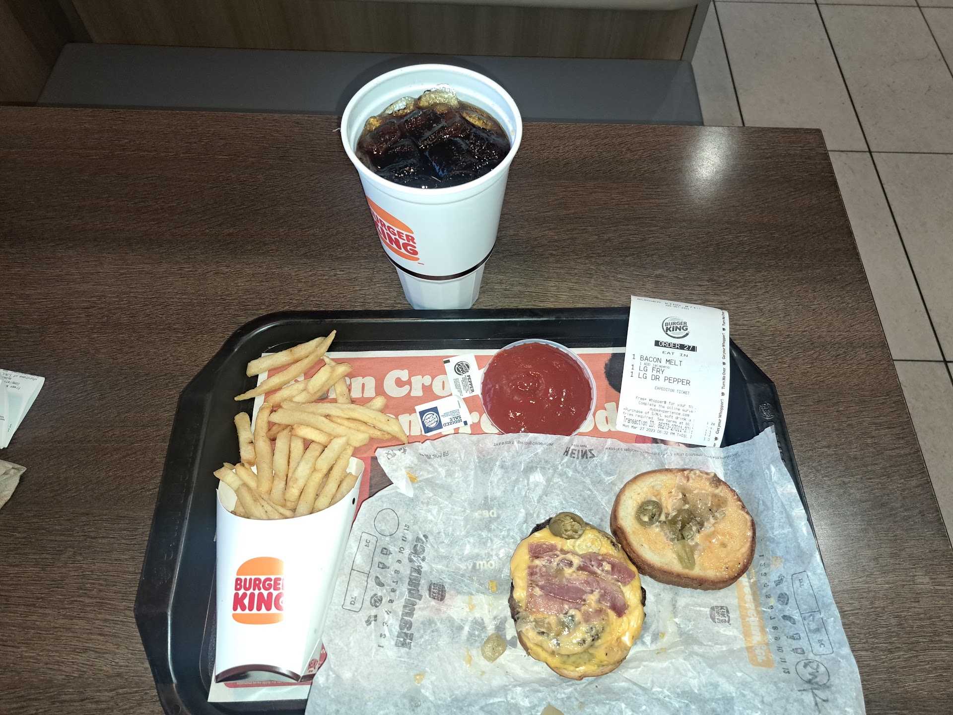 Read moreOn 7/20/24 at approximately 11:20am I drive thru ordered a double whopper with cheese, no pickles, just the sandwich. Order came out to $9 and change. Although the man at the window was very professional and friendly, he proceeded to take my debit card and hold onto it for at least 5 minutes while they prepared my food. Debit cards always need to be charged and immediately returned to the customer for obvious reasons. Once I got my food, I took one bite and it was cold. Not warm at all. So I proceeded to enter the building and ask them to remake it. Again, I spoke to the same man who was at the window and he was very friendly and immediately granted my request. At this point I chose to look into the kitchen and watch them make my food. I then witnessed the food worker wiping his gloves on the back of his jeans and proceeding to handle the food. At that point I lost my appetite and requested a refund, as I would not be eating there. I then requested to speak to the manager and was told the manager was “M.I.A.” And they were calling them to see where they were. A few minutes later a young man came up who looked about 18 years old. He didn’t introduce himself. Then he went around the corner by the drive thru window for a few minutes and reappeared at the front counter with cash and placed it down on the counter. I asked, is this the amount of my order? He said yes and I picked it up and counted it. Only the initial employee I dealt with apologized. Typically, in this situation the debit card is issued a refund, but at this point I was ready to leave, so I took the cash and left. I’m seriously considering reporting this to the...