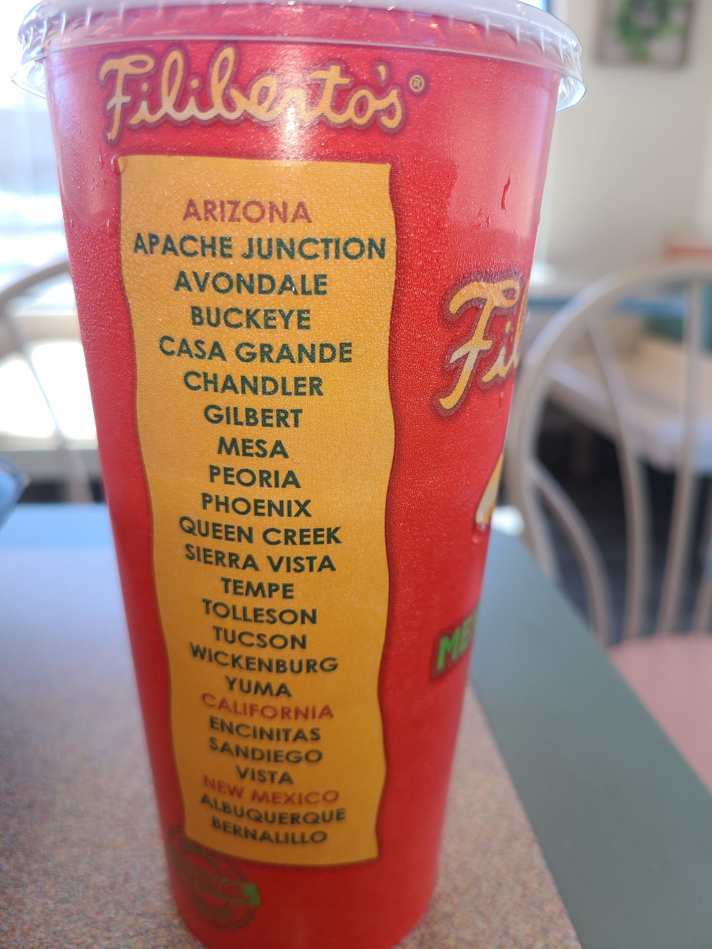 Read moreTerrible! I ordered number 15 first visit ever. Chili relleno so tough couldn’t even chew. Food barely warm and more on cold side. Cost $15 and didn’t have dinner as I got it to go and just a few min away to rv resort. Called them and the gal just said ok I’ll tell the cook or can you come back and we can redo! Like I want to get back in my car and hassle. It’s already horrid. I ordered this same thing at obeirtos in cottonwood and it was delicious. The diners look quite similar. Anyways, I just won’t go back to filbertos because they thought it was ok I just be more inconvenienced by driving back instead of just offering me another try another time on the house. They also said they got new microwaves and they aren’t working well. So basically they knew this and sold the poor food quality...