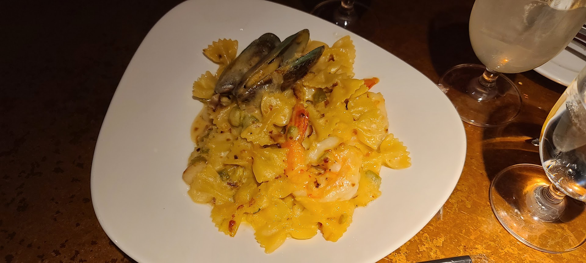 The whole regular menu was gone, to my surprise and a holiday menu was put in. This menu had one salad, one soup, two entree (turkey or fish and both came with the same sides and no other sides were offered) and 2 desserts to choose from. 1st that is terrible selection 2nd none were available for anyone with any kind of diet restrictions. Nothing vegetarian, nothing gluten free I am gluten free, and also on an ayurvedic protocol for my diet. I can't have raw (salads), dairy (the soup had dairy), root vegetables (the sides were carrots and potatoes) or gluten (both desserts had gluten) But it was a holiday at 5pm where else was I to eat? So I stood.
