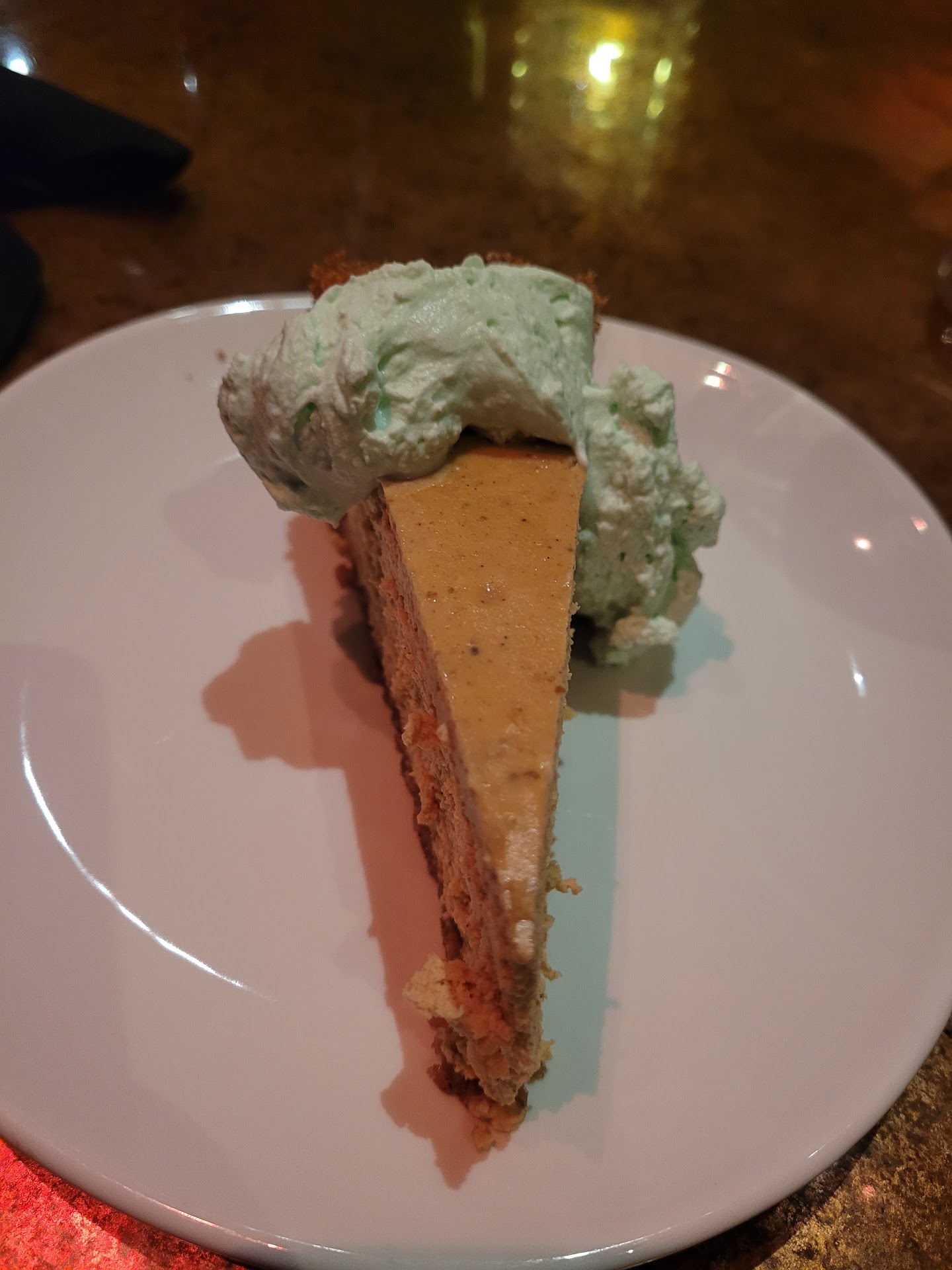 The dessert came out, the whipped cream was all over and looked nasty like a 3 year old was given the can....