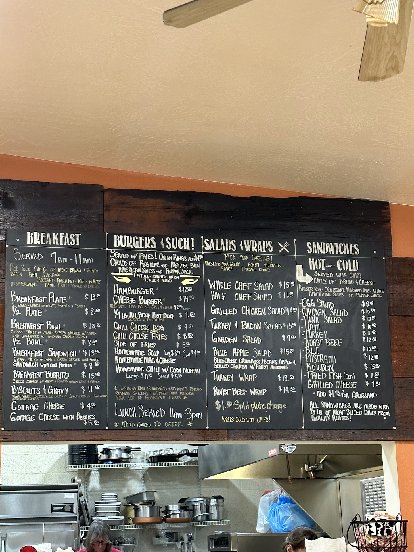 Let me start by saying that we are from the Phoenix valley and our food was great, but we won't be back due to customer service given to another table, and that is why I have rated our visit one star. Patrons at a table near ours looked to be at a business lunch. The server - who loudly and proudly told the patrons - was not only the owner but also the Vice Mayor of the Town. Well, this owner and Vice Mayor gives HORRIBLE customer service! At least two of the patrons (possibly more as I could not hear everything in the loud restaurant) asked to modify their item that they ordered. Both were very rudely told that "there are absolutely no substitutions! It comes how it is and we won't change it!" The gentleman at the table was told he could 'pick the item' (I could not hear what item) off of his sandwich! What the hell???? I have NEVER been to a restaurant in which you could not alter or substitute your menu item. That is absolutely absurd! What if the guest has an allergy? Tough shit, pick it off?!?! But what did it for me was the 'matter of fact - I don't give a shit about your opinion' attitude that the owner gave the patrons! She made it clear that she could care less about customer service! As I mentioned before, the food was good, but for me the customer service needs to be equally as good for me to return - and that means ACCOMODATING YOUR CUSTOMERS! For a small town, I will be surprised if this business survives under this model. Cashier was equally unpleasant when cashing out - no personality, no 'thank you' for spending your hard earned money with us. Nothing - blank, void. We will...