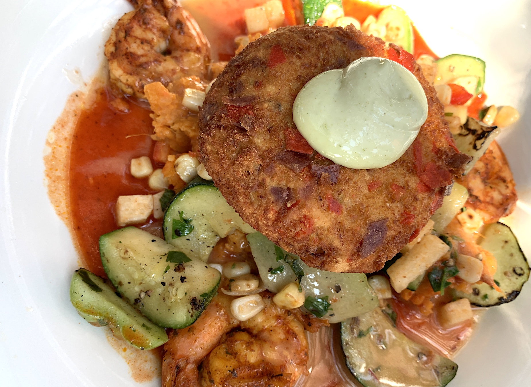 On our most recent visit, I ordered the chef’s special grilled Pacific MahiMahi served with papaya ginger salsa on a sesame noodle cake. My wife had one of her favorites from the regular menu, the grilled shrimp and crab cake main plate served with mashed sweet potatoes and chipotle corn salsa. We shared a delicious bowl of their weekly special tomato basil soup. Since we had no room for dessert, we took home a slice of their special lemon cheesecake which we thoroughly enjoyed.
