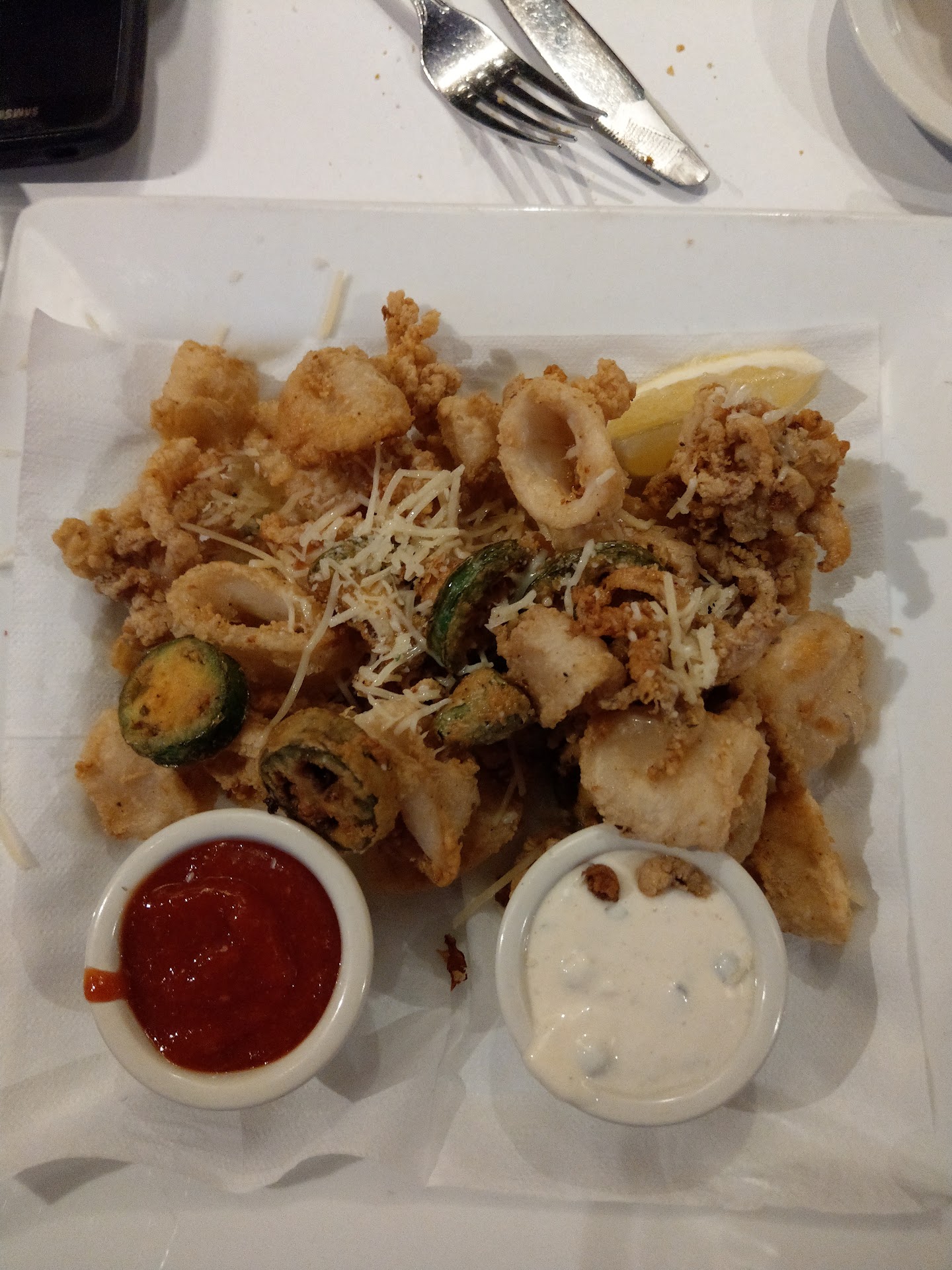 Read moreWe came at around 7pm with a reservation and were promptly seated. Starting with the seat placement, our table was right next to the kitchen; while the sounds of the sizzling food didn't disturb us, the occasional loud clamor of banging plates made us cringe. The waitress forgot our fourth member's order, thus prolonging the wait. Total wait time for the rest of us though was about 25min, which is not too bad. Complimentary bread to begin the course was decent, and the sauce that accompanied it was oddly addicting. The fried calamari appetizer pictured below was prepared well, but it didn't stand out from any other calamari dishes that we've eaten. The entrées, however, were amazing! The meat of the lamb shanks was tender and was easily pulled off using only a fork. The distinct taste of lamb was not overbearing at all. Mashed potatoes tasted good, and the side of vegetables complimented the dish well. Be aware though that while the lamb shanks appear to have a lot of meat, the large bone accounts for about 70% of the size. Two were enough for me, but order accordingly. The chicken parmesan was the first dish that I've ever seen to have TENDER AND SOFT chicken breast. I don't know how they did it, but it was not dry whatsoever, a common problem of chicken dishes. Vegetables as a side were decent as well. The grilled steak tasted good, although it wasn't cooked as well as my party member wanted. The scalloped potatoes had WAY too much cheese, which made it a little overbearing to eat. Portions of the panko pork were a little small and the taste didn't stand out, but it was worth giving it a shot. Overall, we would eat here again. Prices are a little more expensive than other places, but we found it to be...