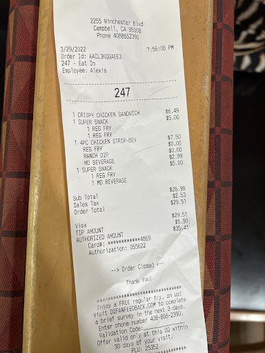 Read moreTerrifying experience recently. I placed an order online for a blizzard and was sitting in my car by the pick up window waiting for it. The guys making the food in the back were touching it all bare handed!! Handling the fries bare hands. Sweeping the floor. Handling a hot dog bun then opening some boxes then back to handling the fries! One of the guys had one glove on but he never changed it between touching all the other stuff and his phone and all the food. I will NEVER eat here and I told all my family never to eat there. Fortunately the people up front making the blizzards were changing their gloves regularly. And also they never touch the ice cream. But I digress. In review, never eat there....