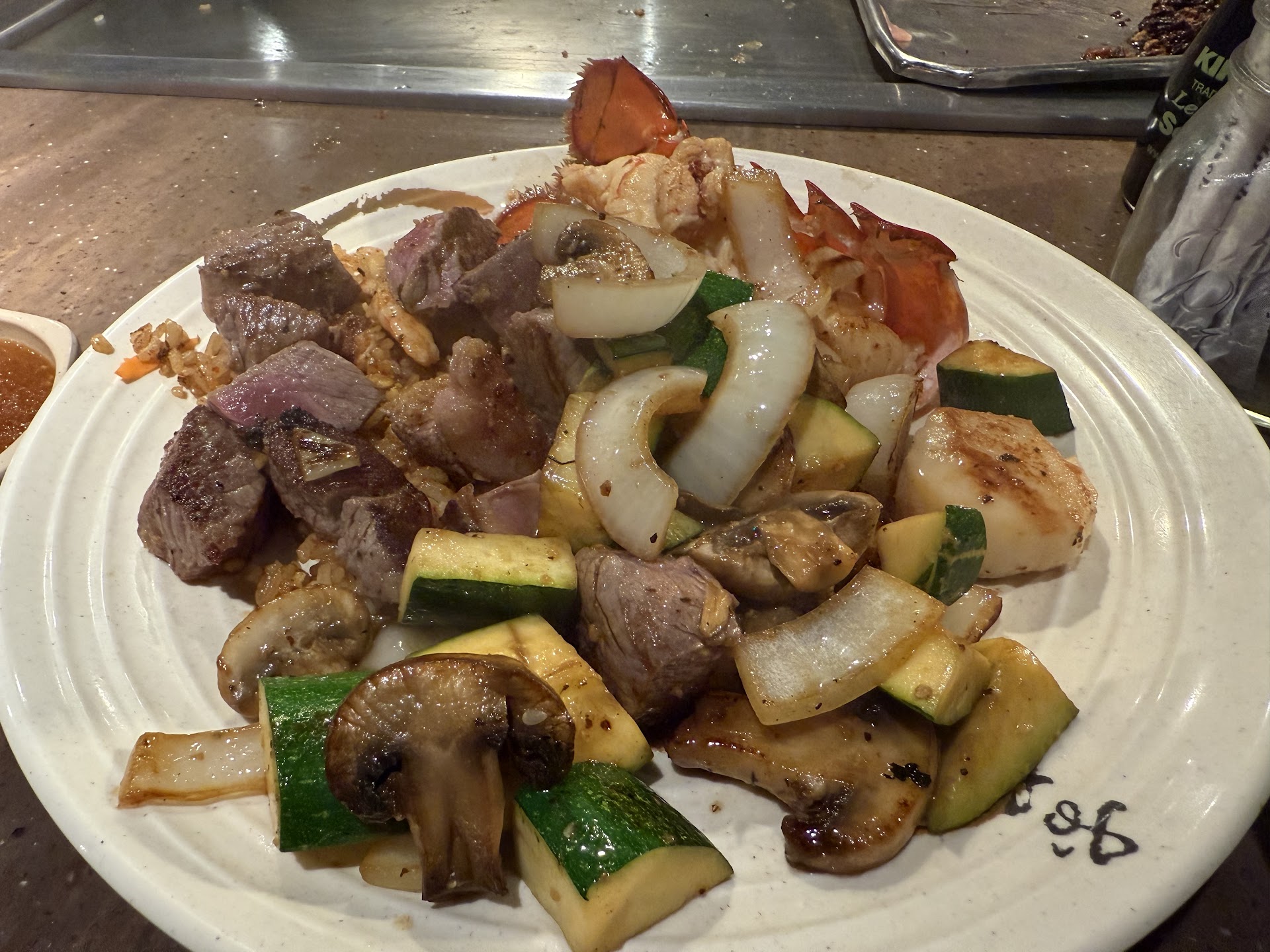 We got the fried rice first, which is unusual. All the food came out well prepared, my medium-rare steak was cooked perfectly. Scallops are also very nice, I know it's very easy to overcook that. My only small complaint is some of the dishes were a little salty for my liking. They also put a LOT of butter. I know butter makes things taste better, but my fried rice was swimming in butter a little, which is unnecessary.