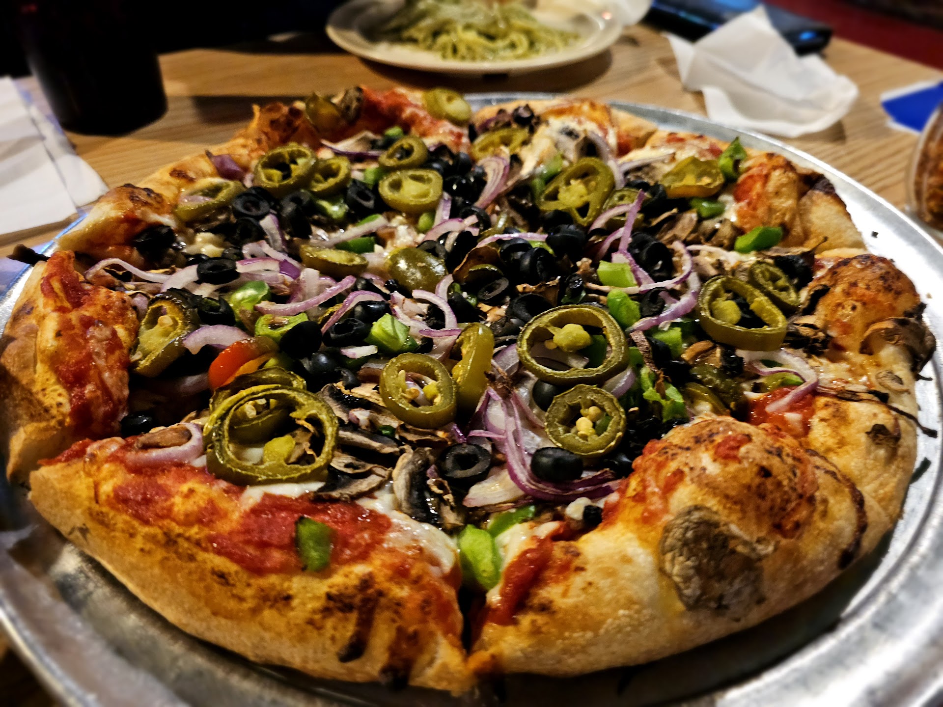 Came here for the second time before a movie. The pizza is pretty good. We got a veggie pizza and added jalapeno's. The toppings are ample, and the crust is nice. If we were to order again, we would request extra crispy as the center was watery. We got the chicken pesto, and it was average. Not a strong pesto flavor, but the portion is good size. I wouldn't order chicken again. It was small cubed pieces that seemed as if they might have been frozen at some point. The garlic bread is probably their strongest contender. Soft and tasty. My biggest problem and why I would only get takeout is they were cleaning the kitchen while we were eating and the cleaner was so strong, I had to get out asap. It was making me physically ill and on the edge of vomiting. :( Even if I didn't have sensitivity to odors, I don't think anyone likes to smell chemicals while they are eating. It doesn't allow you to taste the food at all. I guess the positive is that the place is probably clean, but I can't risk getting a migraine or getting ill from it. It is very loud in the place even with only a few people and the kitchen staff going back and forth with a cart of dishes clanking as he goes over the carpet (3 times in the 40 minutes we were there) was less than pleasant. The place is very old school and very 'rough around the edges'. You grab your own forks, plastic plates, and super thin napkins. It's a good place for families. I'm sure because of the portion sizes and prices, just know what you're getting into when going. They seem very nice, so I'm torn with a not so great review, but I think honesty is the only way restaurants can know opinions and try to...