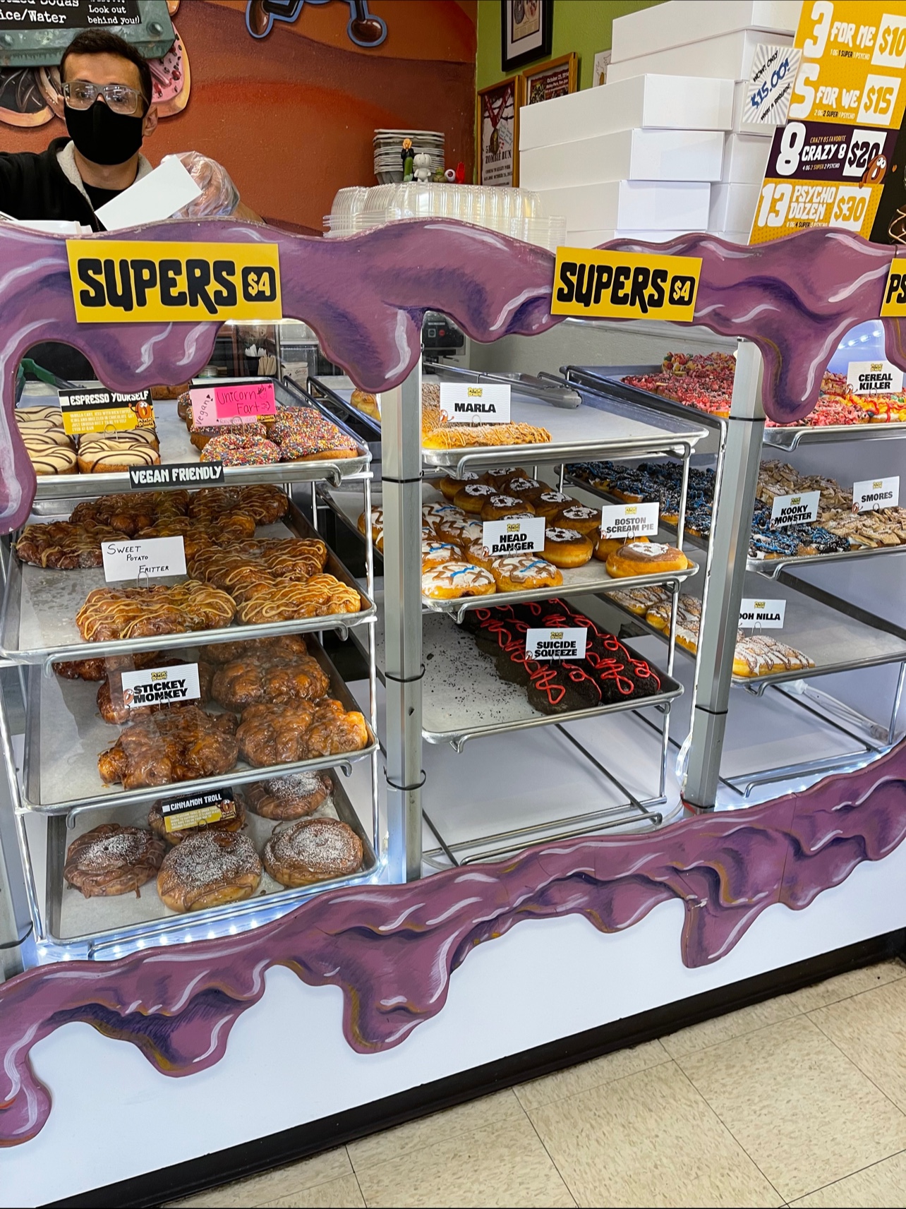 Giving this place 4 stars because the donuts aren't all that amazing that they should cost that much, but marks for creativity and maintaining the theme. All in all, we've had better donuts for a much lesser price (even in the Bay Area).