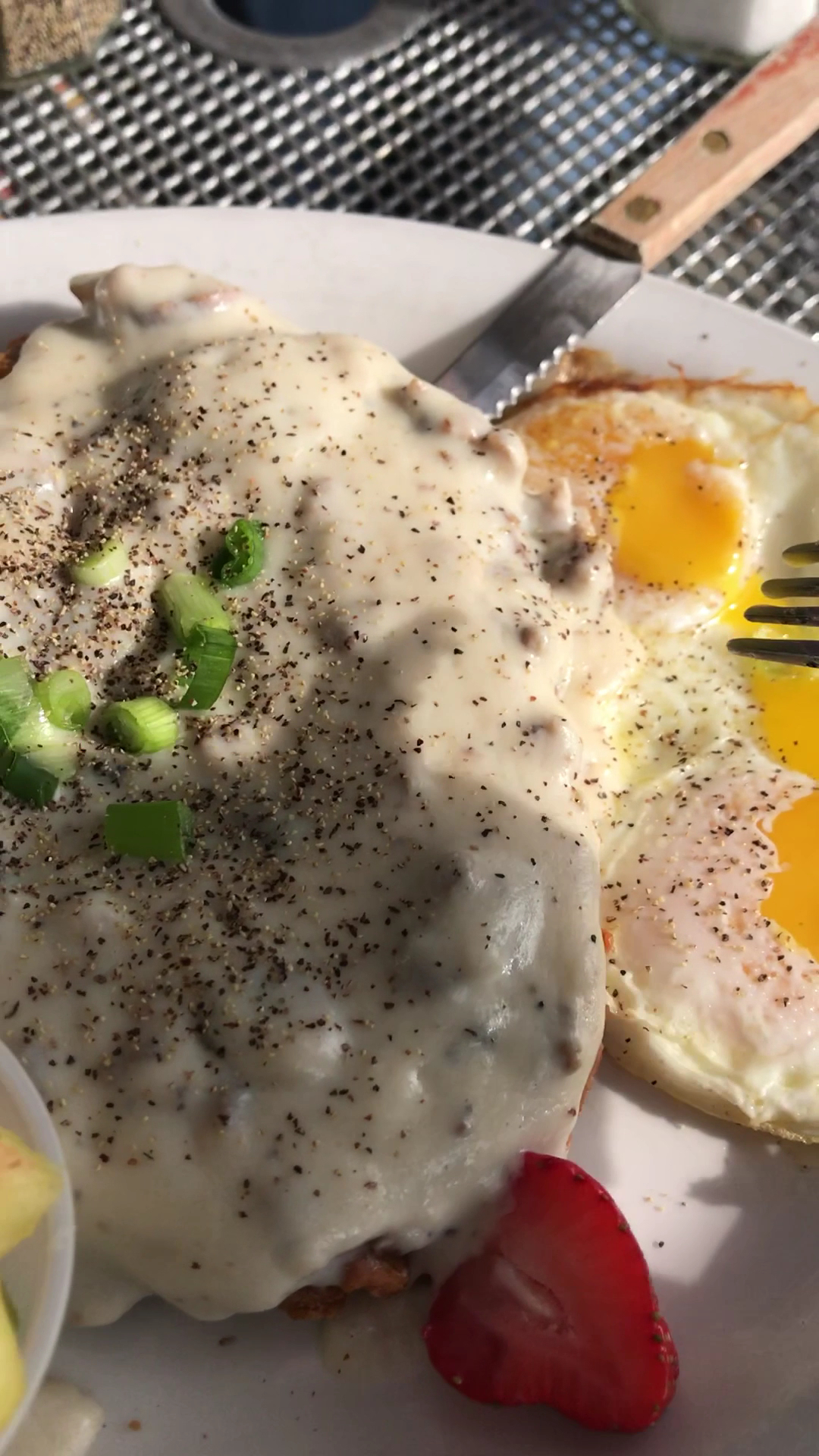 Food: I ordered my go to dish âone for f their specialty itemsâ the Chicken Fried Steak; comes with 2 eggs, hash browns and a side; I opted for fruit. The presentation looked good, the eggs were cooked to perfection and the fruit was good. unfortunately the chicken fried steak and hash browns were lacking flavor. All that is, except the chicken fried steak âtoppingsâ which had fresh cut green onions on top and overpowered my taste buds, I scraped them off and again the flavors fell completely flat even after adding black pepper; not even the ketchup helped, so I finally came to the conclusion that this is just going to be a substandard meal. I seriously contemplated giving them 3 stars because the service was outstanding but unfortunately the food just fell flat like...