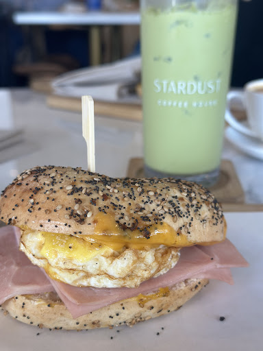 Let's move on to the food. I ordered a ham and egg bagel, my friends ordered an acai bowl, and a steak and bagel. I was surprised with the flavors, they're not bad. The bagel had a nice bite with a light crunch and soft on the inside. The acai bowl was good. My friend's "steak" and egg bagel was a burger patty. We thought it would be sliced pieces of steak or something, but it was just a burger patty.