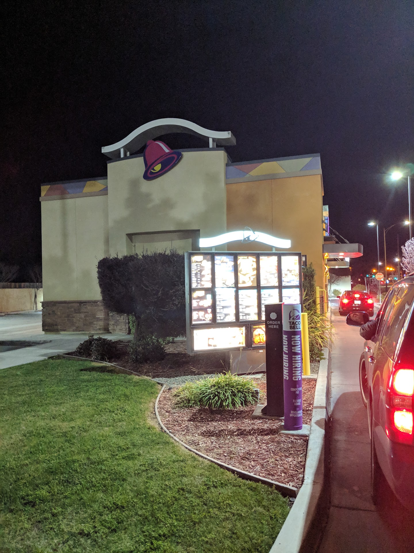 We went to the drive-thru a couple of days ago after a long hiatus. Our experience was much better here than in the past. A pleasant, heavy-set, older guy helped us at the window, and our order was made quickly, turned out well, and everything we ordered was in the bag. Our burritos were good, not skimpy, like in the past. We visited again yesterday and had an excellent experience with the same nice guy at the window, and the food was good, not messy or skimpy. Yay! The Mexican Pizza is on the menu again! Veggie or Ground Beef.