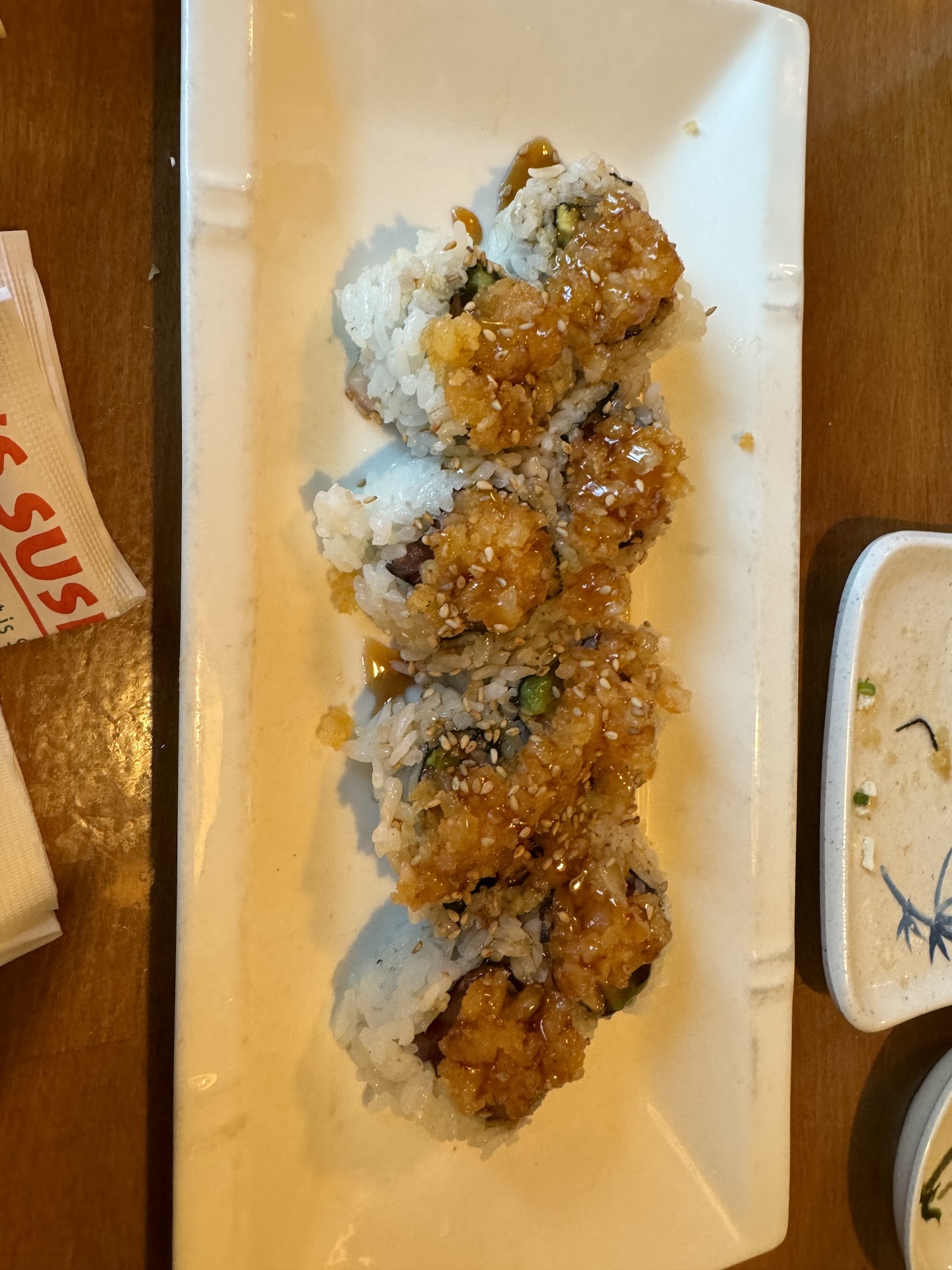Ā Ā Ā Read moreBeen coming here for years. My old favorite was the baked scallop roll. My new favorite is the hamachi crudo and tartar. Last night I tried the sweet Suzy too and really enjoyed the sweet roll. They gave us all miso soup and a bowl of edemame to share.