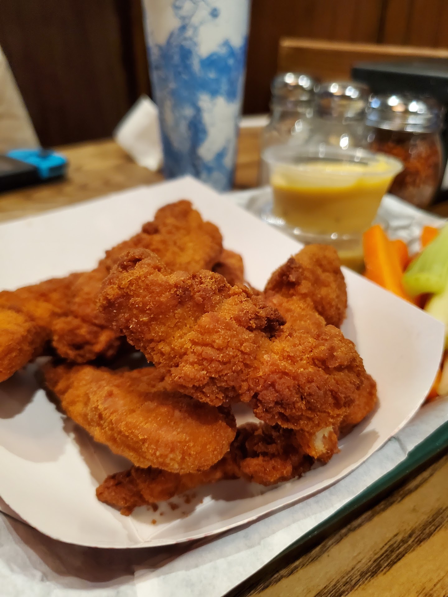 Small kids arcade.. Place can get packed.. seats can be a hit and a miss. Like Sports: Tv’s always ready. If you order before you dine in, is a win. Always a 25 to 30min. Wait. Getting it for take out is also eliminates the seating stress.