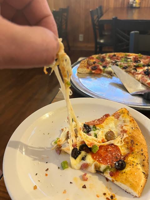 Thursday night. In town for a high school softball game on June 1. By 6:30pm the bar was full so I was shown the âbackâ dinning area by the kitchen. Heard it was the best pizza in Campbellsport and they did not disappoint! A PBR makes anything better but the 12â meat lovers needed no help! A good mozzarella pull, steaming hot, perfectly placed and proportioned ingredients made for beautiful pictures. Timely service, great atmosphere, and attentive waitresses made for a big tip that night!!