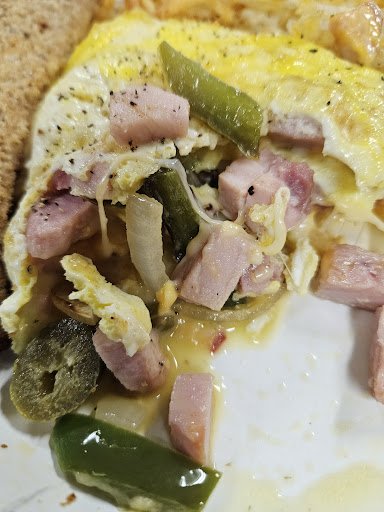 The three egg omelet comes with a list of ingredients you can choose from. Make it huge.