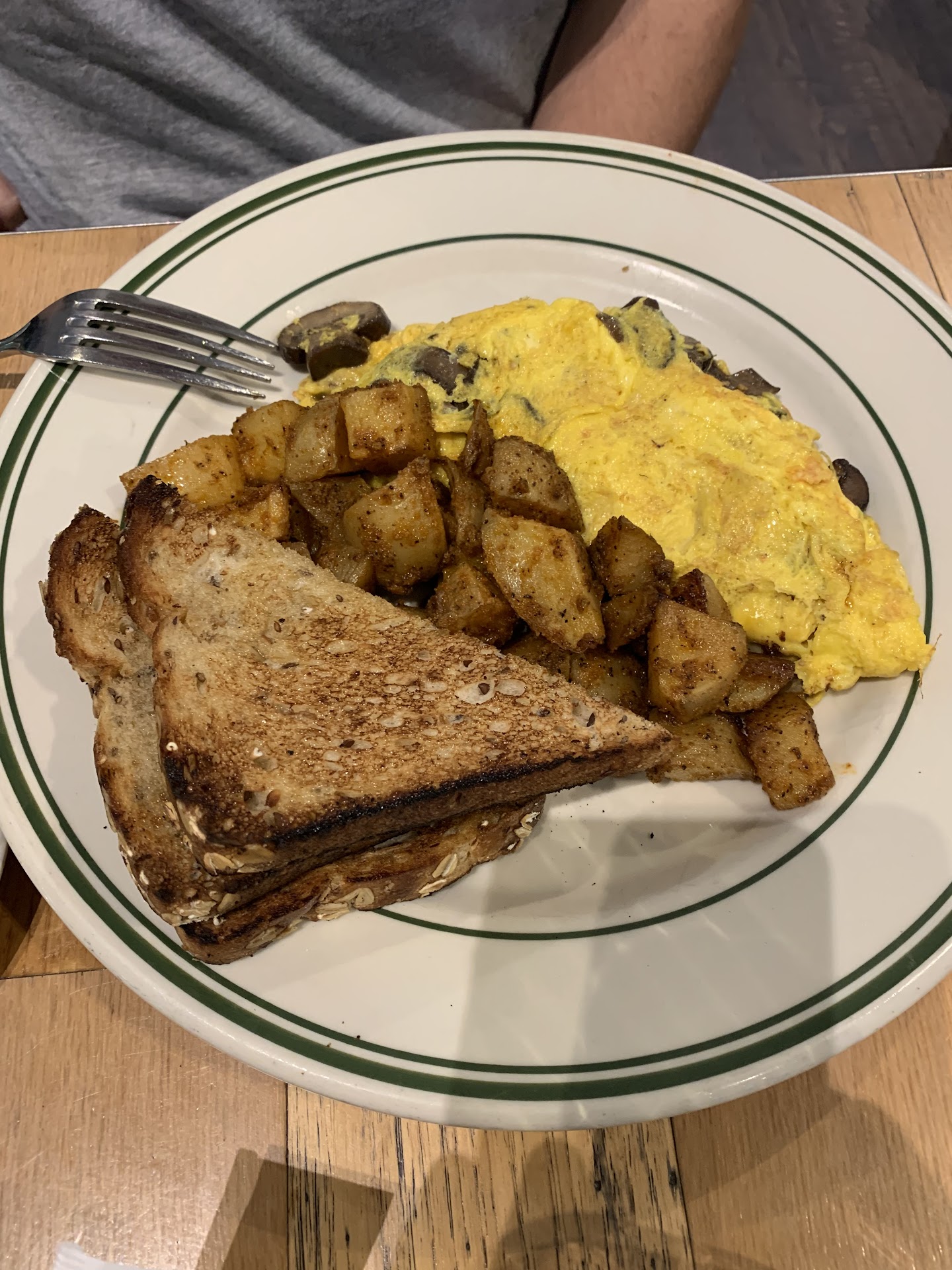 On my first visit there are some thumbs up and some things that would have resulted in a lower review but I did some research and that turned what would have been a 3 star review into a 4. First off... the building is beautiful... pine interior, clean lines, a fusion of cabin and city. The food is locally sourced farm to table and you can definitely taste the difference. Even the strawberries in November were amazing. The menu is quite small, 4 or 5 breakfast options and 4 or 5 sandwiches Our table ordered two western omelets and a healthy omelet. One person ordered the western without ham. Another person asked to upgrade to sweet potato fries. The omelets come with one slice of toast that is out of this world...get a side of it. The service was not that good. There were a lot of people working but things seemed slow and disconnected. One person took the order. The specialty coffee took a long time to arrive but the person in charge of making the coffee spent a long time talking to the many other staff members. It looked like there were at least 7 to 9 employees and it was not that busy. The person that brought our food did not know what it was when we asked a question. The service seemed so disconnected I had to do some research. On their website it did say they provide a safe space for those recovering to work. That totally changed my view. The menu has a note about their farm to table practices. I wish they would add a note about their community practices as well. That is something to be admired. I do feel they could benefit from having someone on hand to direct those working. It is very open concept so you can't help but notice what is going on around you. I will definitely return to try the...