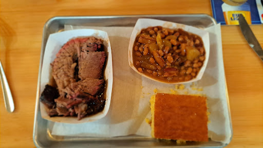 Read moreStopped in for BBQ and a quick meal on the road. Service was good, not great. Letâs get to the food. I had brisket sandwich and âTexasâ beans. Being from Texas I thought yeah letâs try these. She had chicken sandwich and baked potato. First the chicken đ. It was terrible. The worst chicken I have ever tasted. IDK what that bird was seasoned with but it was dry and tasted terrible. My brisket was loaded with fat. Some is to be expected. Come on guys trim some of that fat off. The beans were too thick, needed mustard for some zing and had no heat. Sorry not â...