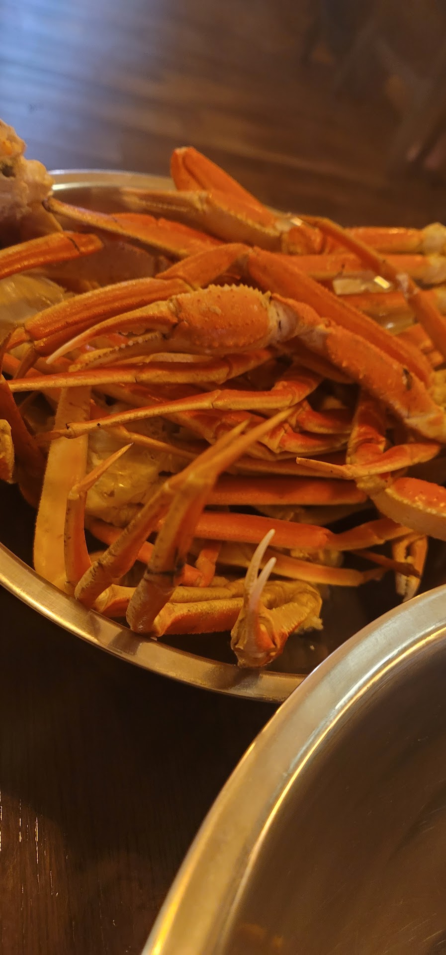 We were pretty excited to try out the all-you-can-eat crab legs! Our experience was mixed but leans on the favorable side. The atmosphere was cozy yet loud. It's not a place with an intimate setting. Way to much fun being had. Everyone seemed to be enjoying themselves. The service was great!! Everyone had smiles and positive attitudes that help smooth over the minor technical mishaps. Now the food. Minor preventable mishaps. #1 The snow crab legs were constantly rubbery from being overcooked. They lacked seasoning badly. Definitely in need of some Old Bay. But there was a constant flow of them coming to our table!! Never without!! #2 The fried scallops, potato wedges, and butterflied shrimp were all slightly above average. No complaints. #3 The lasagna was cute in its little skillet. However, a thermometer is an essential tool. The middle was ice cold. Huge let down. #4 The Meatloaf again was in its own little skillet. This product was a disaster and needs an execution revamp!! The exterior was crispy like it sat in the salamander a bit too long. The middle of the meat was mushy, borderline liquid, 0 form, and sat in grease. Not good at all. #5 The issues we experienced were all fixable with a little B.O.H. attention except the Meatloaf. That was bad! We are willing to give Cast Iron another shot based on the reasonable price point, overall enjoyable atmosphere, and fixable issues. Another plus was the full bar. Although we didn't partake this evening, the Buffalo Trace Bourbon caught my eye!! We would have liked a vegetable option available. Corn on the cob is a no-brainer, although a fresh green bean would have been nice as well. Perhaps a side...