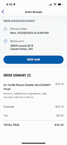 Read moreMe & my wife used to work at dq as mangers and now that it’s moved the service has just gotten so terrible. The blizzards are never mixed well, you get to the bottom of the blizzard & it’s just white vanilla ice cream after you spend over $8 on blizzards that you can’t even enjoy. Tonight we thought we’d get chocolate ice cream instead so it wouldn’t be as big as of deal , we waited 10 minutes for 2 blizzards, no bag, no napkins & the spoon in the blizzard with the lid on it. I never handed things out like that so rude & annoying especially with ice cream all over the cup. We, when we worked for dq had the blizzards in bags, spoons & lids on them ready to go. I understand you have to show them upside down but most people want them in a bag after to eat for later. Just so annoying we usually go to a different dq since the service here has gone...