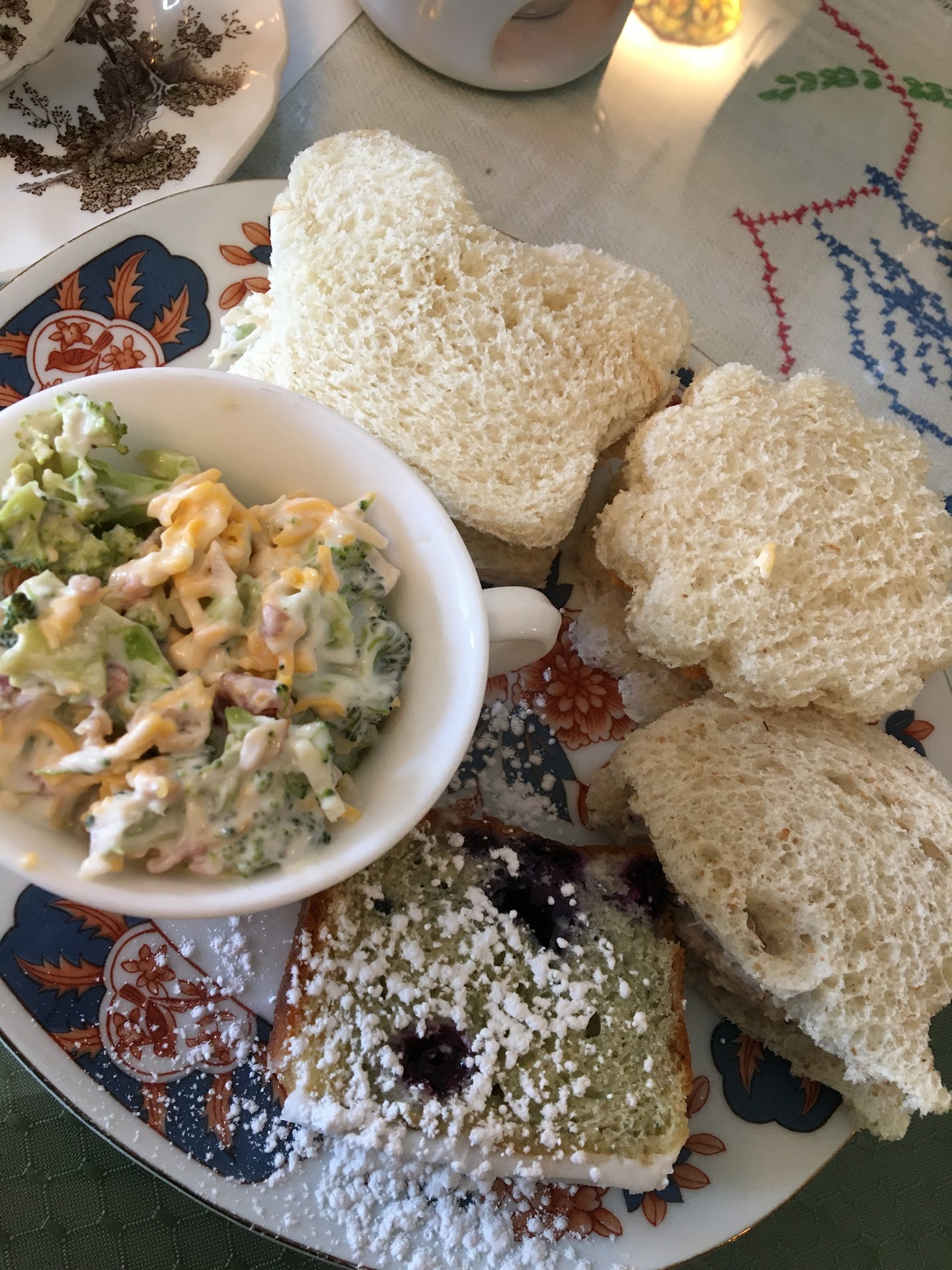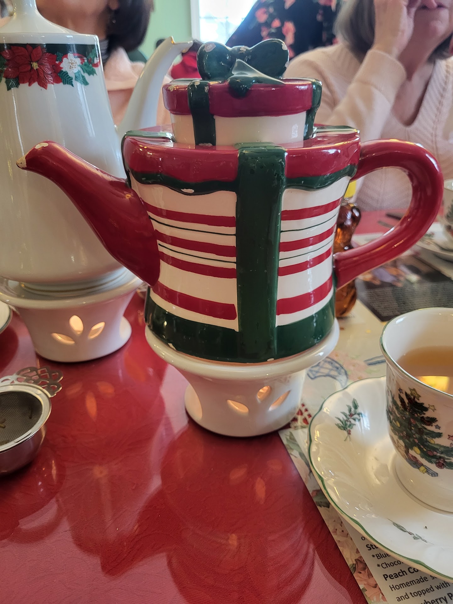 I have two young daughters, ages 4 and 6. This year they wanted to join the family for our tea. They love tea parties at home. I knew they would only nibble if at all at the food we would have. One of them has a food allergy and both are picky eaters. Often times when I eat at restaurants, I will bring in some fruits and vegetables to supplement their meal. Today I ordered a cup of hot tea for each of my daughters and I brought in a slice of salami, 2 baby carrots, 4 strawberries, and a granola bar for each of my daughters. I also brought 10 adults who paid $11.95/person for a Garden Tea.