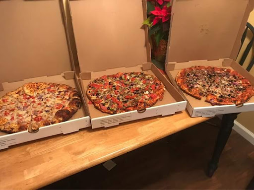 The boys got pizza and bread sticks. My son, who loves pizza, only ate one slice. My husband wasn't a fan of the chard underside, burnt edges, sloppy preparation, and crust that was stretched too thin to be a regular and too think to be a thin crust which makes me think they were going cheep and jipping on the dough.