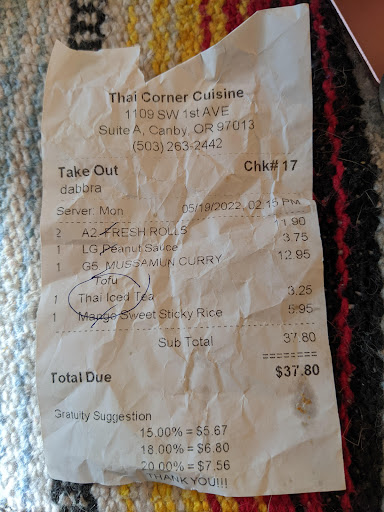 Ā Ā Ā Read moreThe customer service is horrible. If you order some of the menu items before 4pm you will get a half portion apparently, but not all items (the chow mein is the same portion lunch & dinner) even if you clarify and pay for a dinner portion. After calling and trying to get clarification we had to re-order and re-pick up dinner only to find that even with the "dinner portion" of curry, the same half sized portion of rice comes with it. In the past we received a large rice with the dinner portion of curry, but we were informed that must have been a mistake and that only a small rice is supplied with curry regardless of the portion of curry. I was extremely polite and asked to speak to a manager as we had to go in 2 separate times as well as called 3 separate times to pick up dinner today and didn't want to drive back for a third time. I was denied the ability to speak to a manager and was abruptly hung up on with no apology or concern after a vague explanation of their reasoning. Their food is good, not great compared to other Thai restaurants but this is the only local option that I know of. This the the first bad review I've ever written and I'm sad to write it. I tried and failed to rectify the situation and clarify any misunderstanding. If you have have the option to go elsewhere don't go to Thai...