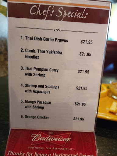 Read moreWe discovered a new gem to share with you. Thai Dish menu offered many choices, wait staff said "you tell us what you want exchange and we will do it". Like i wanted chili sauce , my friend wanted limes and cilantro with the pad thai dish. It still amazes me how many Thai restaurants have their own version. We had Pad Thai w/shrimp and Red Curry w/chicken vegetables. Pad Thai was delicious as was the Red curry Vegetables ( not to spicy, just enough). Nice to have options of meats and seafood, prices were reasonable, service was cordial too! Parking is plentiful, there is a front and back entrance, clean restrooms and clean restaurant also. Wheelchair ♿️ accessible. Prices were $11-15 for lunch. I look forward to another dining experience here, sooo many choices, flavors and textures. I hope you will stop by and find this great foodie...