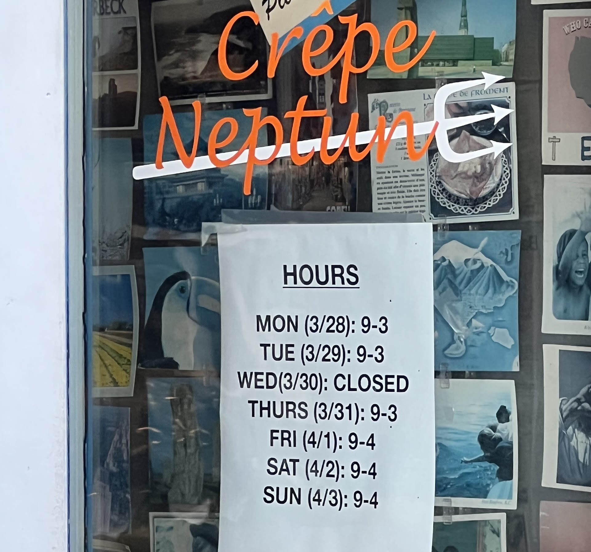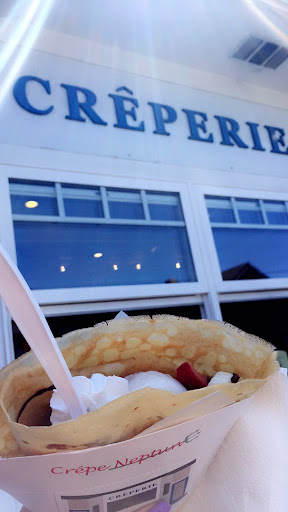 Read moreCrepe Neptune is doing everything right! We decided to walk into town and try this place for a light, quick breakfast. They are all served ice cream cone style, for a crepe on the go. There were so many options that it was hard to choose. The menu was very detailed. They had “Savory” on one side and “Desert” on the other. They also had a Crepe of the Day special listed. When we finally decided what we wanted, they have to kiosks to order from. Everything is extremely detailed and makes it easy to customize your chosen crepes. I ordered Neptune’s Daughter (pictured). It had lemon juice, sugar, and butter. It was so good!! I could have easily eaten another. We also ordered the Haystack Rock and the Smugglers Cove. They were all seriously the best crepes we’ve ever had. I tried a latte with vanilla and cinnamon, which was a good way to start our day by drinking it on the beach watching the waves. There is no seating inside, but there are a couple of benches near the walk up. So you do everything on the kiosk, including pay. Once your order is ready, they call your name and voila. The girls and gentleman there the morning we went were all smiles. We were very sad the they were closed Monday morning before we left. I needed one last fix before leaving Cannon Beach. Bummer. Guess I need to go...