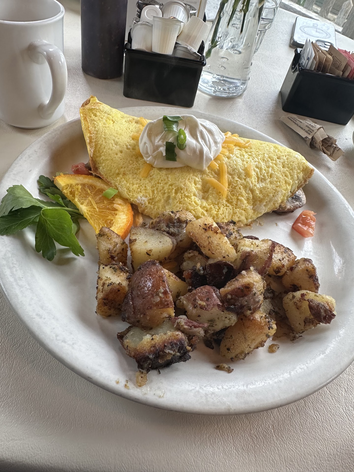 My friend got a regular omelet and side of potatoes for $17, again it felt like an incredibly steep price for a very modest serving of normal tasting food.