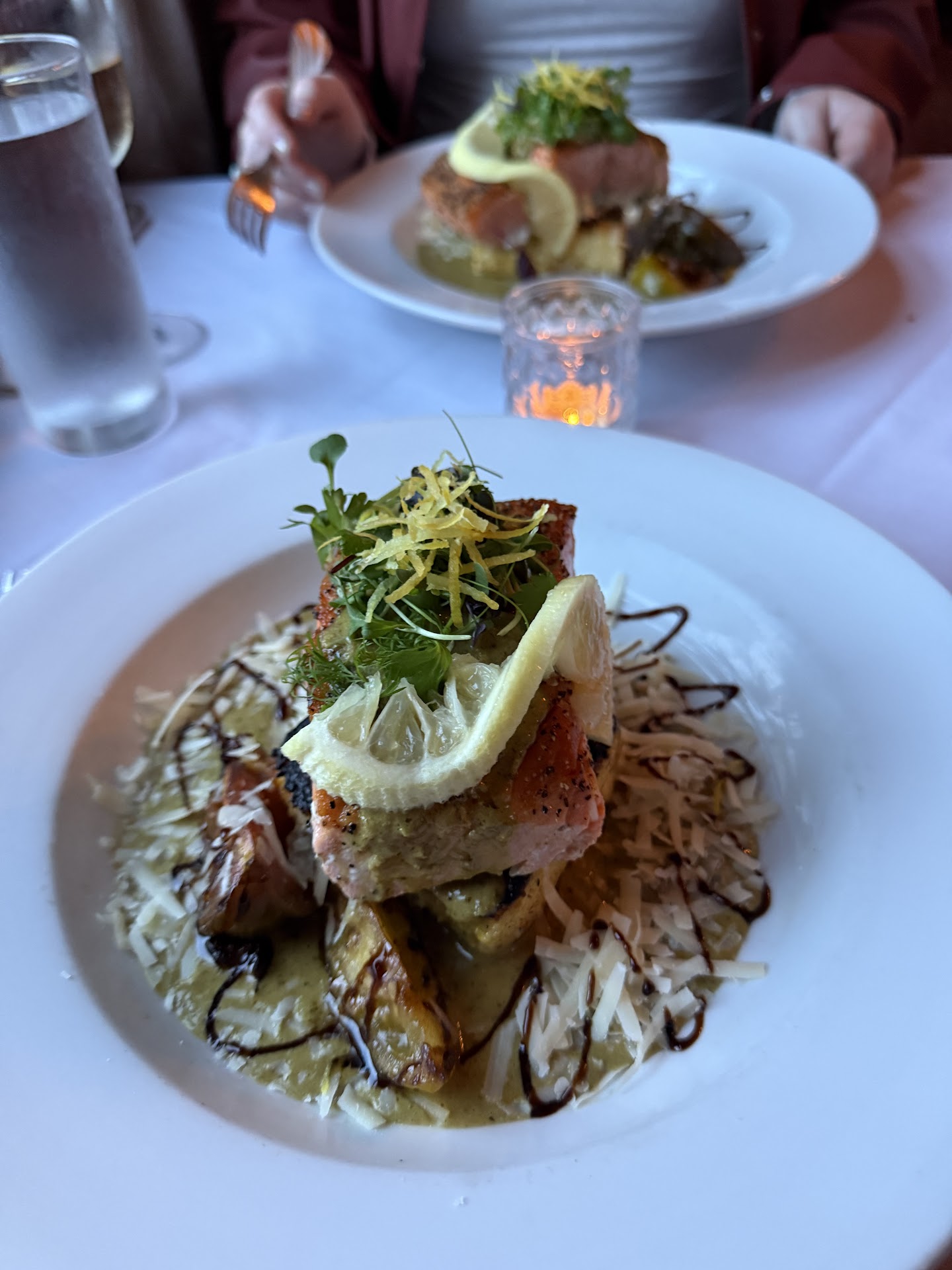 Read moreWe liked Josh and his predecessor so much we made consecutive dinner reservations for five nights of our 8 day vacation in Cannon Beach and Josh didn’t disappoint - each night we were offered not only the varied menu items but the ability to cherry pick and order individual dishes from the chef’s Prix fixe Menu. The green salad with fresh berries and goat cheese and pecans is a WONDERFUL way to begin a Josh meal. Exquisite lettuces sourced from private growers and berries bursting with flavor - oh I could go on an on. The dressing is out of this world and you can mop some up with their homemade focaccia bread slathered with their VERY addictive herb/garlic butter. I had the Tiger Prawns the 1st night and my partner had the salmon. Both dishes shined with special sauces and complimentary starches - mine had a polenta cake also surrounded with local veggies -all in their respective different sauces- truly a meal to take your time with and savor! I could go on but this review will be too long. TRUST ME - if you like ‘dining’ the old world way, hearing a marvelous background music selection that does not interfere with conversation but contributes to the joy of life and good food, come here! This is NOT a modern hip place. The food is but this is old world dining at its most intimate and careful attention to all details. Take your time, plan on a relaxing dinner, and let Josh and company thrill you. Reservations a must! Come early - 5 to 5:30 pm is a good...