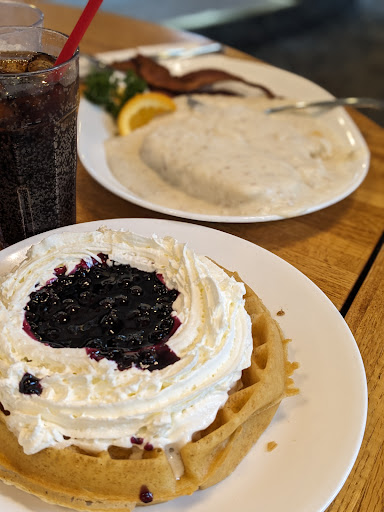 Ā Ā Ā Read moreThe experience here from a tourist's point of view, was a mediocre one at best. Looking at Google maps when I found this place also showed that it's a mini chain of diners along the coastal towns of Oregon at least. I ordered a taco omelette and it was adequate, the hash browns were unmemorable and the taco seasoning never really came out in the omelette. You do get salsa, sour cream and guac with your omelette which is nice. Unlike every other diner I have eaten at for breakfast my entire life you don't get a choice of toast here. Hope you like white bread toast. My S.O. ordered biscuits and gravy. The gravy was an insult to sausage gravy and the biscuits were like paste. The waffle though. The waffle was good. We had it with the blueberry compote it was light and airy like a cake would be. More of a dessert and not a breakfast item. We also must have been our waitresses first customers of the day because she forgot my S.O.'s drink order and my sister's added cheese to her eggs, and we were handed the bill as soon as we were handed our food. This place can be passed by. Especially in Cannon Beach where you can get a better breakfast made for you and...