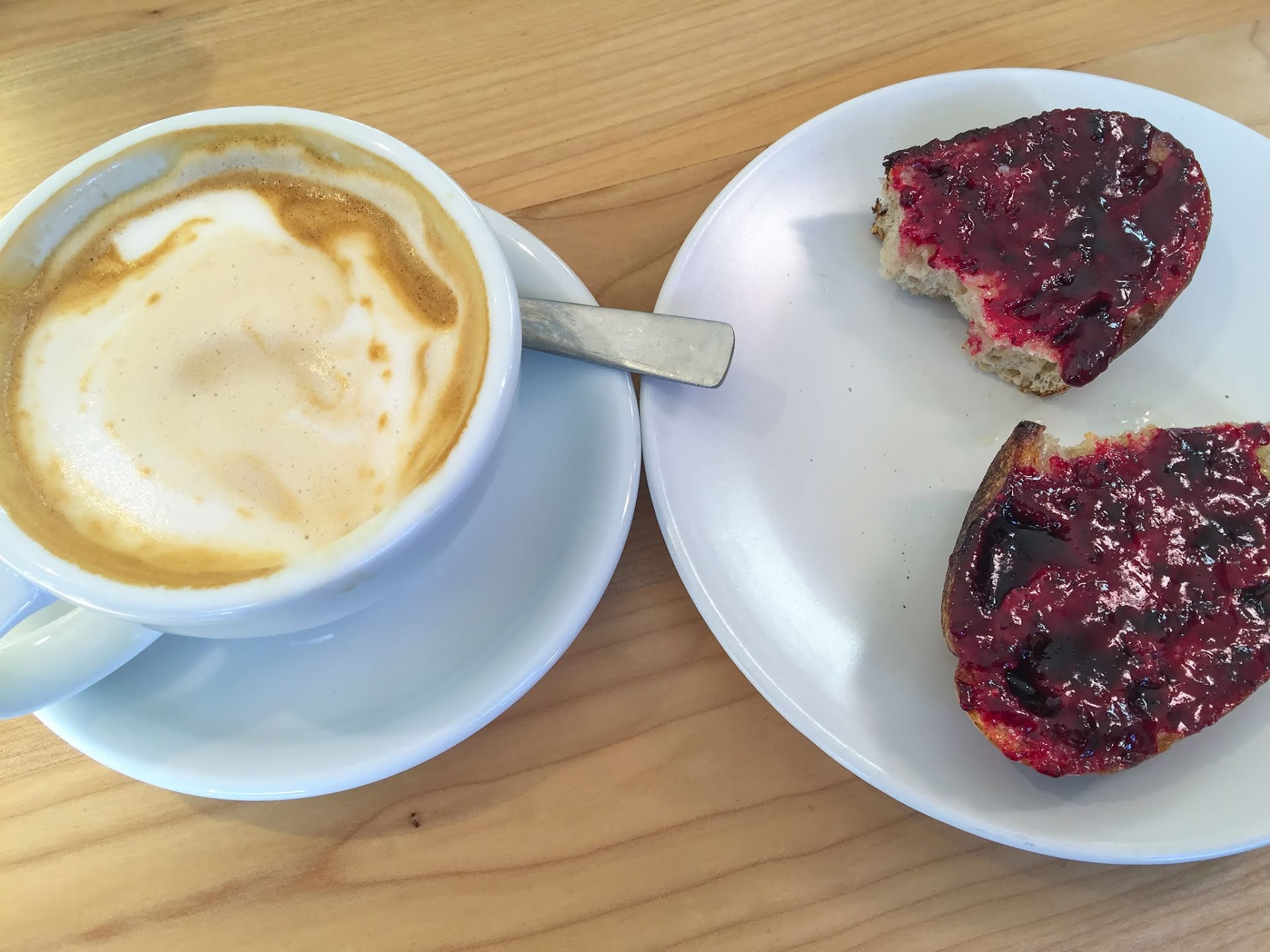 Read moreWe found this place online while searching for a serious coffee shop. They are in a tiny house on South Hemlock Street, Cannon Beach. The space reminds me of a little tiny beach cafe in California. Two mornings in a row, we seemed to have arrived at a good time because there were long line-ups afterward we placed our order. Imagine the line up during peak season! Our drinks (cappuccino and almond latte) were great. Properly made. Consistent even though they were made by a different person each day. They use the famous Stump Town Coffee. We bought a loaf of bread each day. Country Loaf and Ten Grains Honey. The Ten Grain Honey bread was dense, substantial, chewy but not dry, very enjoyable with almond butter and marionberry jam. Pictured here was the breakfast toast using Country Loaf with marionberry jam. Very yummy. We tried the blueberry scone as well and it was amazing. The order taking and kitchen execution need quite a lot of improvement before the rush in peak season. Still, we rank them five stars because there is no other place we would prefer to go for breakfast than at Sea Level while visiting Cannon Beach. Despite the fact the kitchen is slow—my toast arrived when I've nearly finished my drink—the coffees were perfectly executed and the beans superb. If the order taking was faster, I might have purchased a second drink, but the line up was too long. We also really enjoy the space – it is perfect for the location. It would not have felt as 'real' if they were to move to a fancy modern environment likes some of the coffee houses we enjoy in...