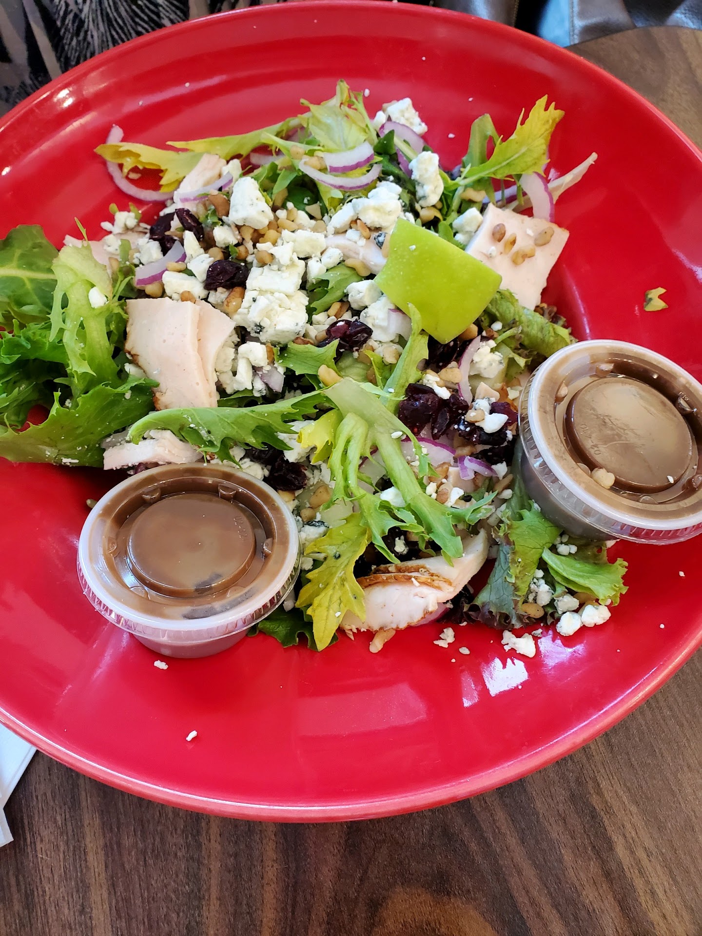 The salad featured a mix of greens which were not your typical iceberg. Then, there were layers of sliced chicken - that we saw them slicing to order – craisins, blue cheese, nuts, and more. Their balsamic vinaigrette was vey tasty as well and was clearly made in house. The spicy turkey sandwich featured Boars Head turkey which was also cut to order. There was also a layer of Habanero-flavored cheese, banana peppers, all layered on your choice of bread. I chose a wheat bread. This was then toasted and served warm. I also got a side of their Macaroni salad. This was a standard macaroni salad and while reasonably good, was the weakest part of the meal.