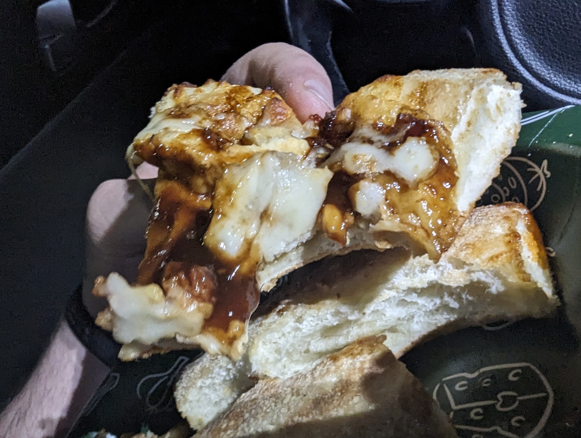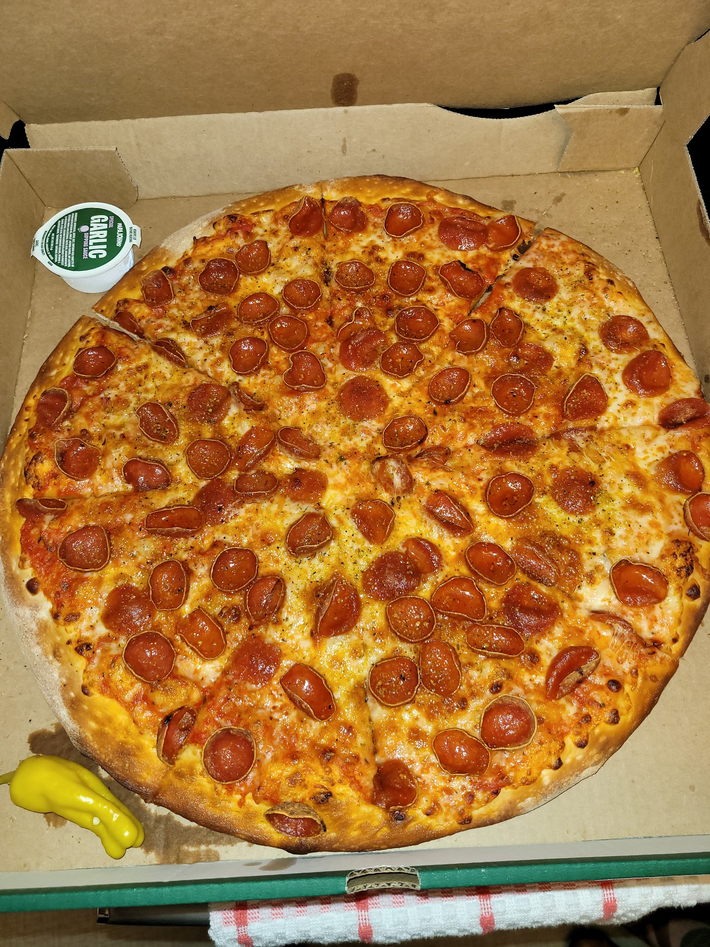 *I should've checked the pizza there in the store (and tried to make this a better rhyme). I assumed it would've been fresh. I got home, less than a mile drive to see I had a cold, very thin-crusted burnt pizza. There's no way, if they had JUST made it, it would've gotten that cold by the time I got home. The crust was like eating a cracker. The garlic butter was solid. My Papa John-loving husband even turned his nose up at it and now no one in this house is getting Valentine's Day loving.