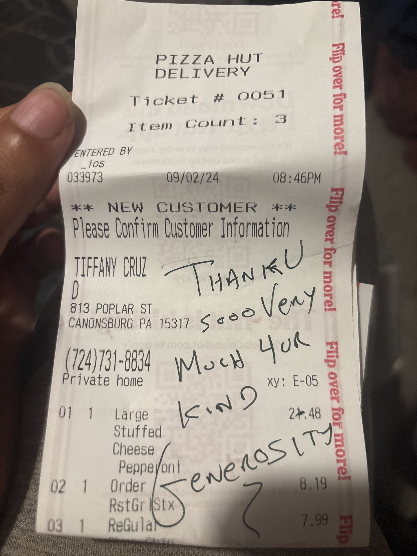 Read moreBe very very careful with this place here. There's an employee(s) here getting customers credit/debit card information and making fraudulent purchases online. Luckily my bank caught it. There might be people out there who was not so lucky. Check your bank statements. I went to this business to inform the manager or supervisor of my situation. Spoke to the supervisor for about 15 minutes, she informed me that she would get to the bottom of it and also inform Corporate. I recorded the entire conversation with her on my cell phone and also provided proof, I left after calmly speaking with her for 15 minutes. The young lady that I spoke to in PizzaHut who claimed to be the supervisor/manager sent the police to my house. She claimed to be scared and feared for her safety. Good thing I had the entire thing video recorded. Oh! I was also over charged for my order. Check your receipts and bank statements when ordering...