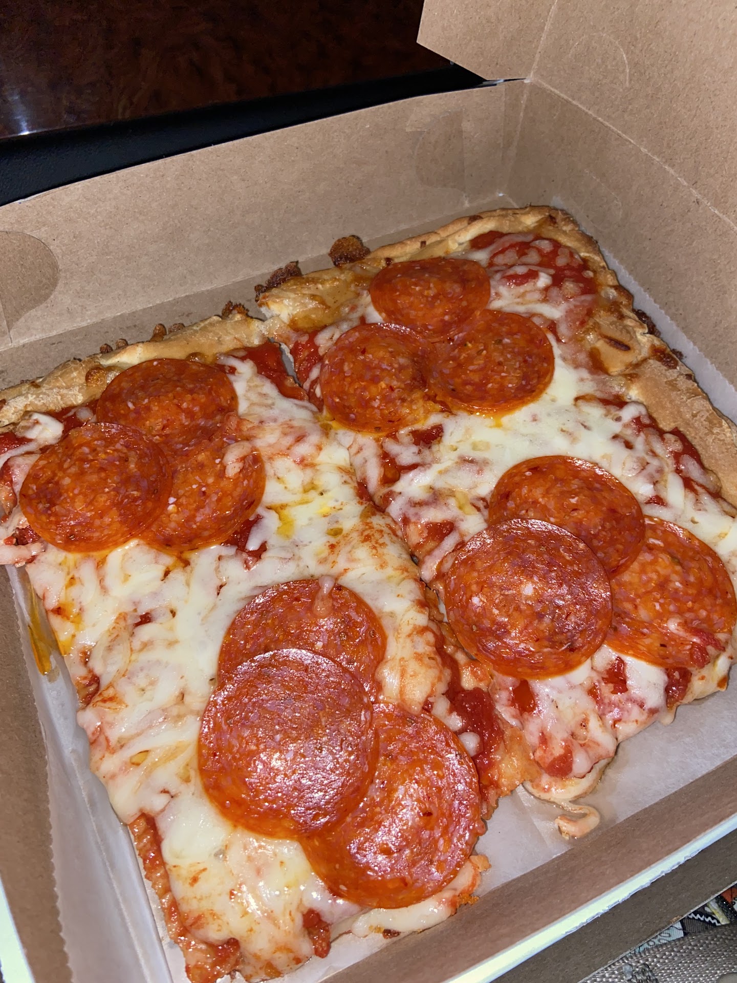 The pizza was actually much better than the price point suggests. The 95 cents per slice is such a bargain. The cheese didn't seem like deli fresh mozzarella, but the sauce was so surprisingly balanced! Not too acidic and very clean tasting. My wife, who easily gets heart burn, was just fine eating this pizza. The crust was nice and crunchy and the toppings were generous.