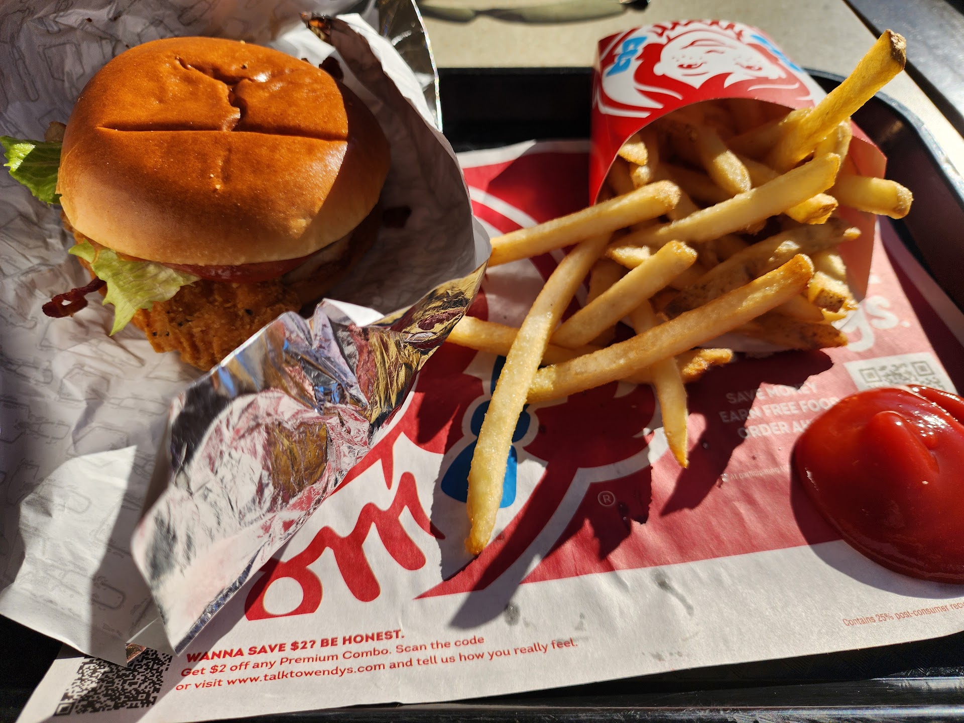 Read moreNot too bad. In the men's room, the dividing wall at the urinal appeared to have been forcefully pulled off its wall mount, as though to make room so two could share the space, but the restroom was clean. The shiny "butter" coating on the sandwich bun smelled foul, nearly making me gag, but the fries were decent. The chicken itself was a respectable cut and not old or dry, as I have come to expect from Wendy's. Cheese on my sandwich was merely warmed, not truly melted - a difficult balance to find for a meal that only took 30 seconds to prepare, package, and serve. Windows were clean, and it was pleasant to sit at a table where the sun warmed me as I looked out at the lands of industrial desolation that hung off the cliff below Interstate 79, holding my nose and consuming this by product of multinational...