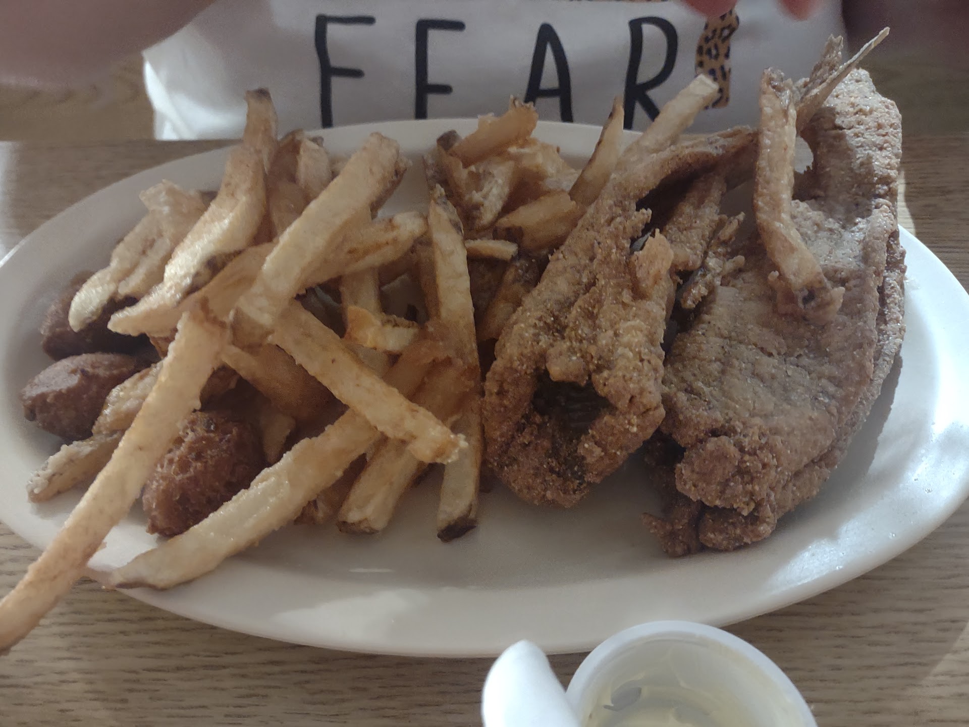 Ā Ā Ā Read moreWell I was very disappointed The flounder was paper thin and fried too hard the so-called catfish I got definitely wasn't catfish too what I'm used to I don't know the first time I ever went there it was fabulous this time it was not I don't know if I'll ever go back because that's $25 you know I think I'd be better off to go to chatters and no I didn't say anything to anybody they were very nice to you but I was super disappointed and usually I'll speak up but I was and I drove quite a ways to get there so I'd rather drive the lines and go to chatters and I know exactly how it is every time I go so I do wish it was as good as the first time I went because I'm on disability and I can't afford to throw $25 away and that's what I feel like I did the clam strips were fantastic now that I have to admit they were great but the rest of it no now the baked potato is good but the so-called catfish...