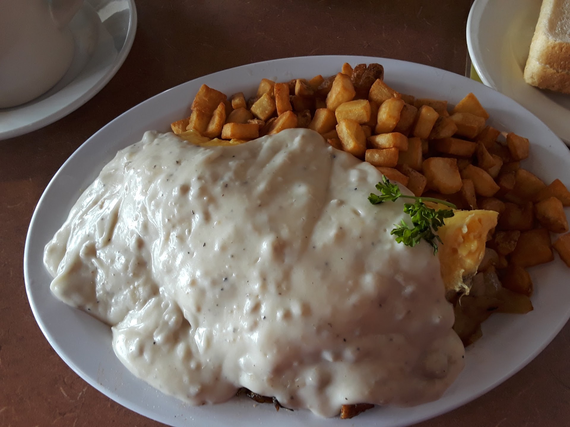 Read moreThis was the best dining experience I've ever had. I am no food critic, but I have been in the customer service and restaurant business for almost half my life, and I've never been anywhere (my own personal employment included) like it. We'll start with the food. I got the country omelette minus tomatoes, with their amazing potatoes. This was a delicious meal, the omelette was prepared the correct way, and the veggies inside were actually cooked! Now, the potatoes. My first initial complaint about this experience was that they don't serve hash browns, that was until I tried their potatoes. They were fried to perfection, and they were so flavorful, and not dry in the least. It was very impressive, as well as that country gravy poured generously over top. I would bet a generous portion of their food, if not all, is home made. In fact, I purposely waited to post a review until after I had eaten my leftovers just to see how well they reheated, and it was just as tasty the next morning, potatoes included! Our table also ordered the red velvet pancakes. The cream cheese frosting was perfect, not sweet at all, but paired with the powered sugar and the pancakes themselves, it was perfect! We ate them later when they were cold as a cake, and yes it was amazing. We also ordered a breakfast chicken biscuit sandwich, cheesy grits, and a side of bacon. I personally didn't try the last 3 items, but I heard no complaints. Now, for the service. Not only did their cooks know what they were doing, but their wait staff was also knowledgeable about the food that they serve. If you wanna see the definition of customer service in action, get breakfast here. I cannot tell you how much of a difference good customer service makes! The waitress was nice and very helpful in answering all of our many many questions. It was all amazing, I can't...