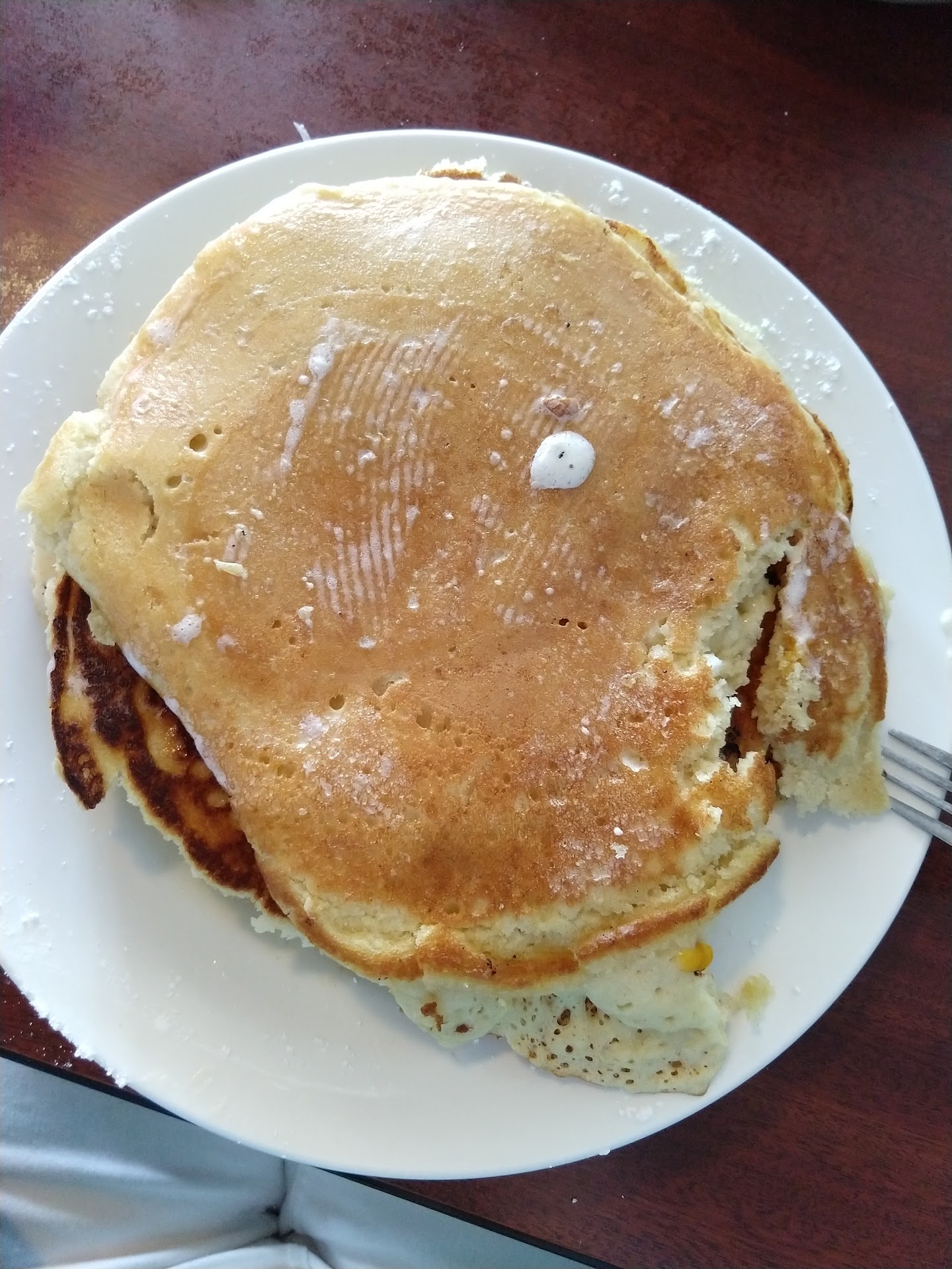 Read moreWe hadn't been here in a couple years, and their biscuits and gravy were calling to me, so we drove past our usual breakfast spot and headed here. We were seated after a 20 minute wait in a booth whose seats were sunken, kind of lumpy, and uncomfortable. Time to replace or re-stuff them. We ordered 2 biscuits and gravy with scrambled eggs and an order of pancakes, with plans to swap food halfway through breakfast. The chef could easily use half the amount of gravy and there would likely still be too much gravy on the biscuits. Sadly, the gravy has changed in the past two years. Previously it was homemade and wonderful, but now it looks identical to the boxed gravy served at your typical cafeteria, but this gravy at least has a little bit of their delicious sausage mixed in. Unfortunately, there's not enough sausage to mask the mediocre flavor of the gravy. The biscuits were dry and crumbly, breaking apart and crumbling into hundreds of small crumbs like a dry, overcooked cake would do. They need to return to the biscuits and gravy they started serving when they first opened. On another note, when my pancakes were flipped, one of them flipped over wrong and cooked folded over on itself so it was heavier/denser than any pancake should be. They tried to disguise this by hiding it in the middle of the stack, not considering that I'd need to pull it out to spread the giant glob of butter rapidly melting on the top pancake. As far as size goes, if you're hungry, still order a short stack. Only someone with an enormous appetite could eat three of these pancakes. All in all, it was an ok visit. Decent service. Ok food. A bit pricey compared to our favorite local coney island breakfast. So we'll be returning to our go to restaurant when we want to go to breakfast next. I do hope your experience...