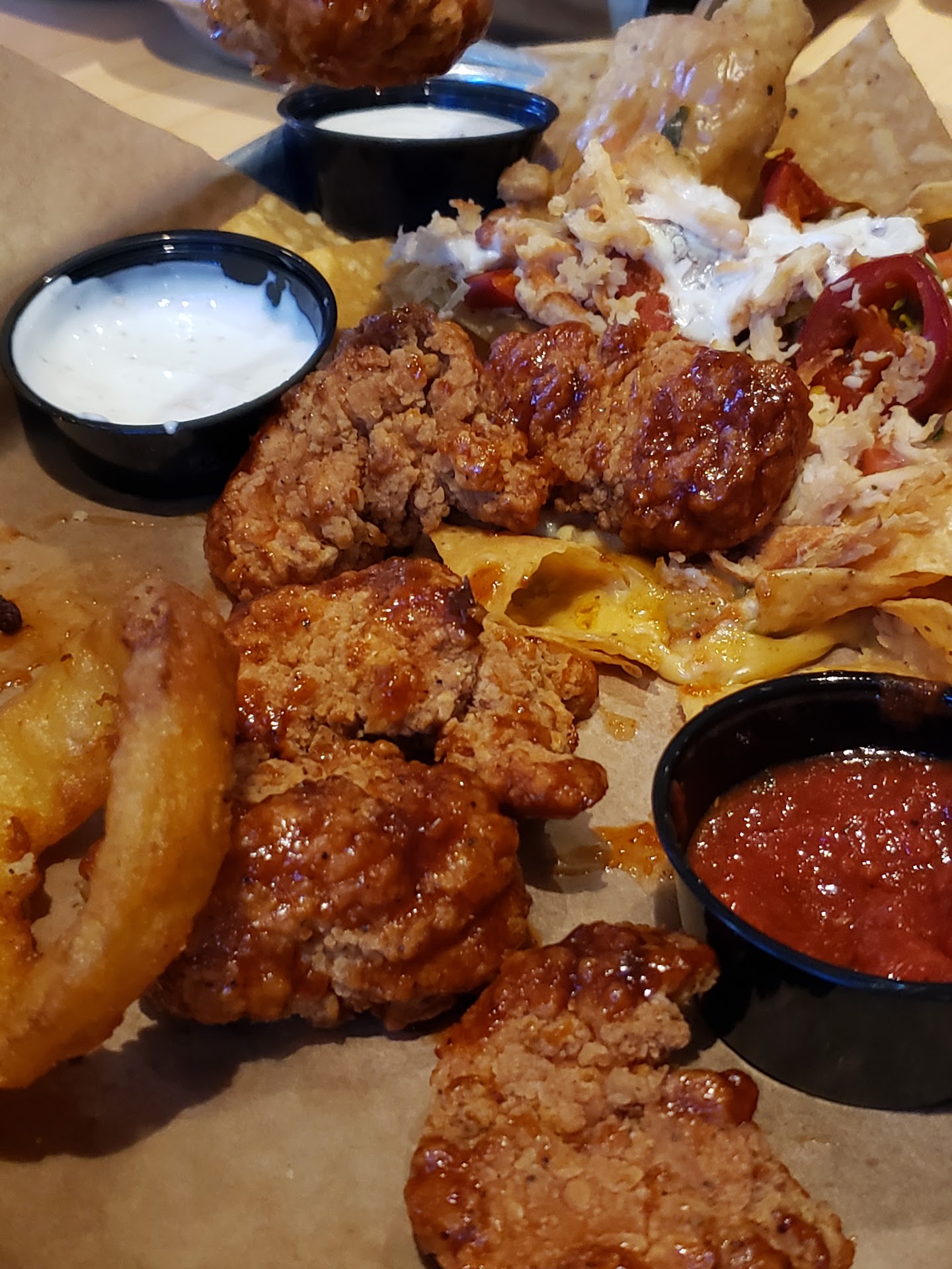 Read moreThe only reason this place got 2 stars was because of our server. Took 7 minutes to seat us as Dimitre stared blanky at the dining room looking the abundant seating as if they were busy and we had nowhere to go. When we finally sit down, it takes 45 minutes from the time we order to get our onion rings and 2 orders of boneless, only for them to be lukewarm. Then Jeff H, the best manager this place has to offer, tells me that if I eat my cold wings I'm paying for them, as if I have another 40 minutes to wait - he tells us 2 minutes for new wings and thank goodness it is 2, because if it were any longer he would have worn whatever he brought out. They were in the holding area so I just wonder whose wings he took to give us these "fresher" ones.