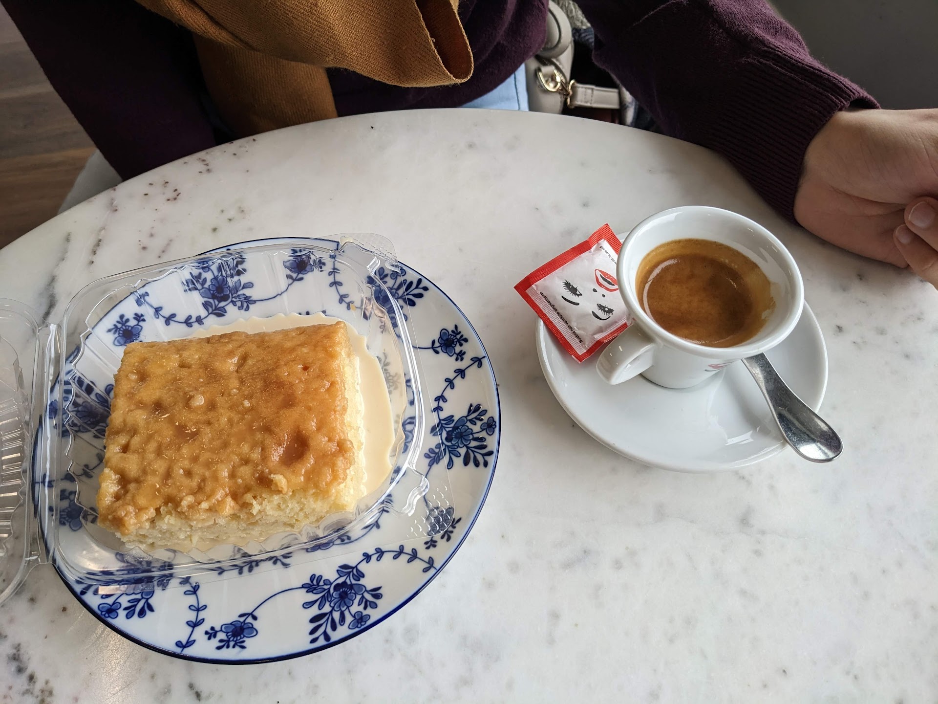 I tried a specialty drink that Coffee Haus serves that originated during the Turkish Empire called Salep. Itās a warm milky comfort drink with a hint of sweetness. I felt like I was getting a warm hug from my mom when I drank it. There is no caffeine. Linda said a lot of people order their Salep for consumption @ Coffee Haus in order to take their time & enjoy drinking it slowly from one of the Coffee Haus in store ceramic mugs.