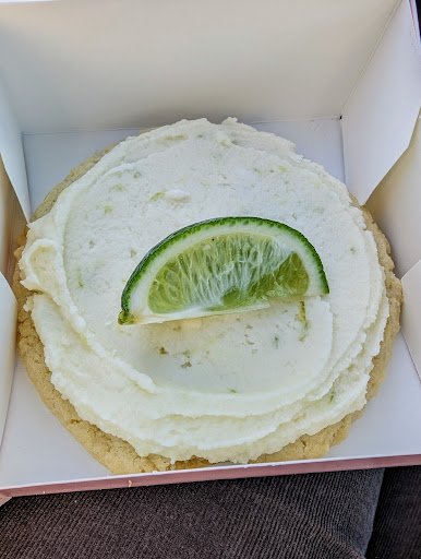 Read moreI wish there was a 3½, but there's not so I choose to round down. Of the 5 cookies I've bought here over several months, two have been undercooked--one to the point of being raw and inedible. They replaced it without question. The latest was the banana cream pie cookie, which I picked up today. The cookie itself wasn't done enough or the dough wasn't made right. It was heavy and looked and tasted like undercooked pie dough with some sugar. The pudding was nothing special, and the banana they used was partly black/rotten, which you can see a little of in the picture. It was thrown together sloppily, and I don't see the point in consuming the calories because it's not very good. On the bright side of today's visit, the coconut lime cookie is delicious. The combination of coconut and lime flavors works together beautifully. It's served chilled, so the cookie isn't as soft as those that are served warm. A drop of lime juice here and there on the cookie made it even better. This location seems to lack the consistency that the Livonia location has in turning out quality products regularly, but when they do, the sinfully caloric cookies are absolutely scrumptious and large enough that you can split them or save...